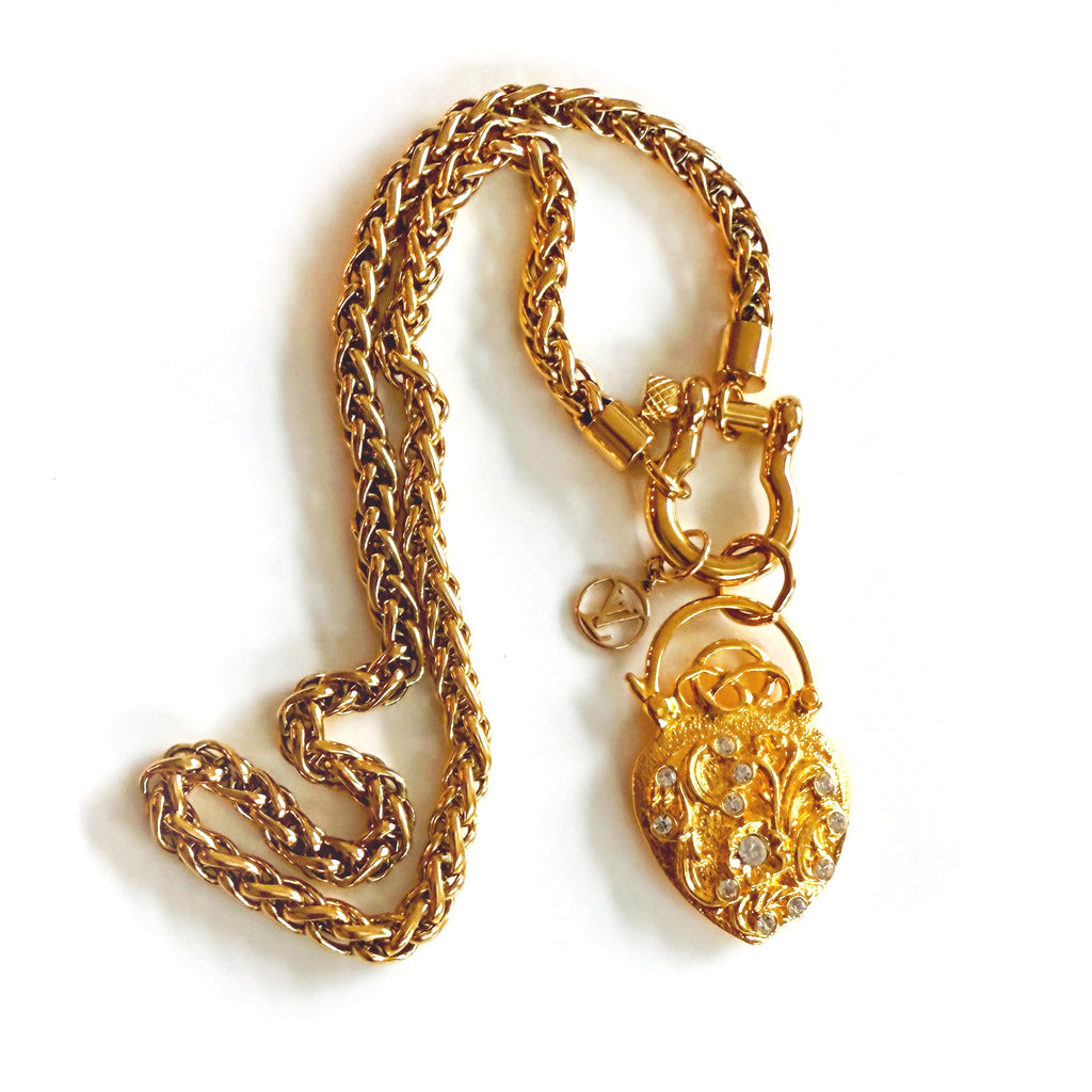 Large Vintage Rhinestone Charm and Tiny Louis Vuitton “LV” Charm Chunky Chain Necklace