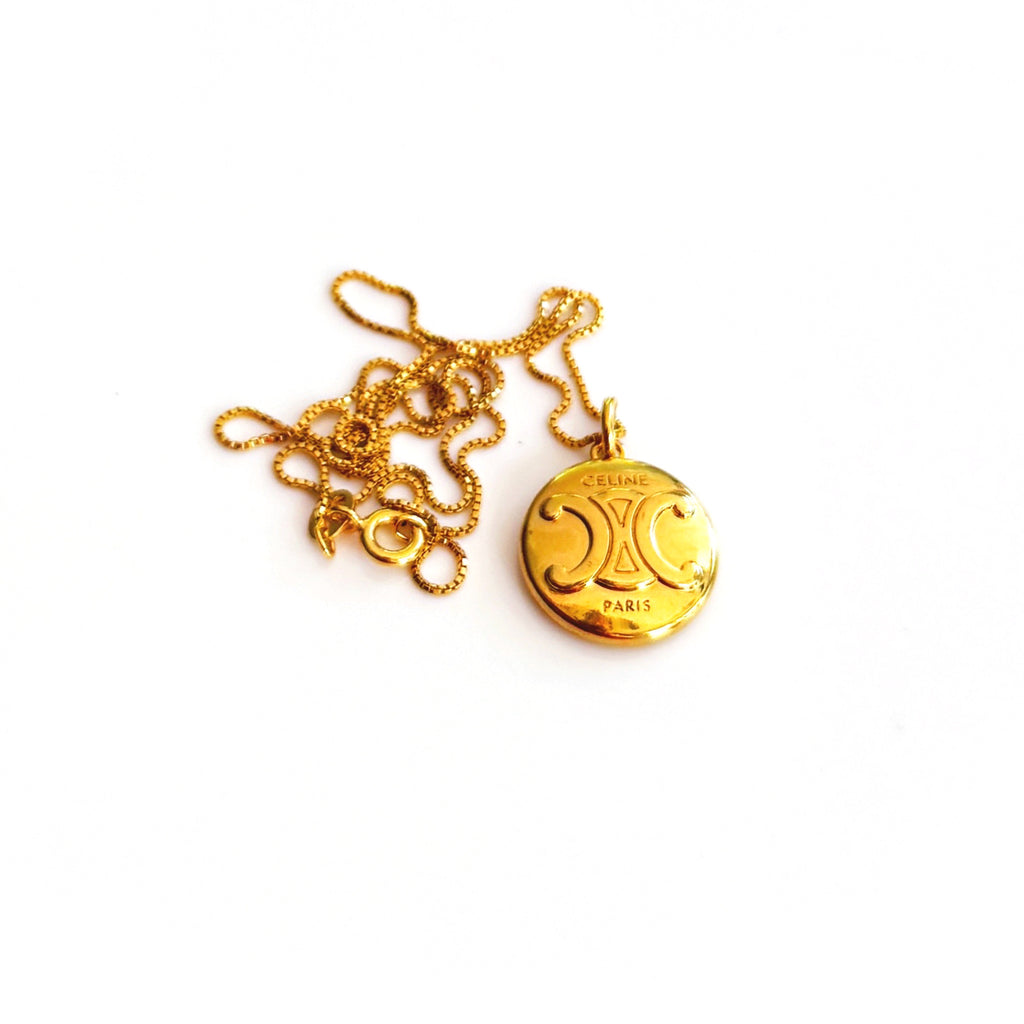 Medium Gold and Red Enamel Repurposed Gucci Egg Saucer Charm Necklace