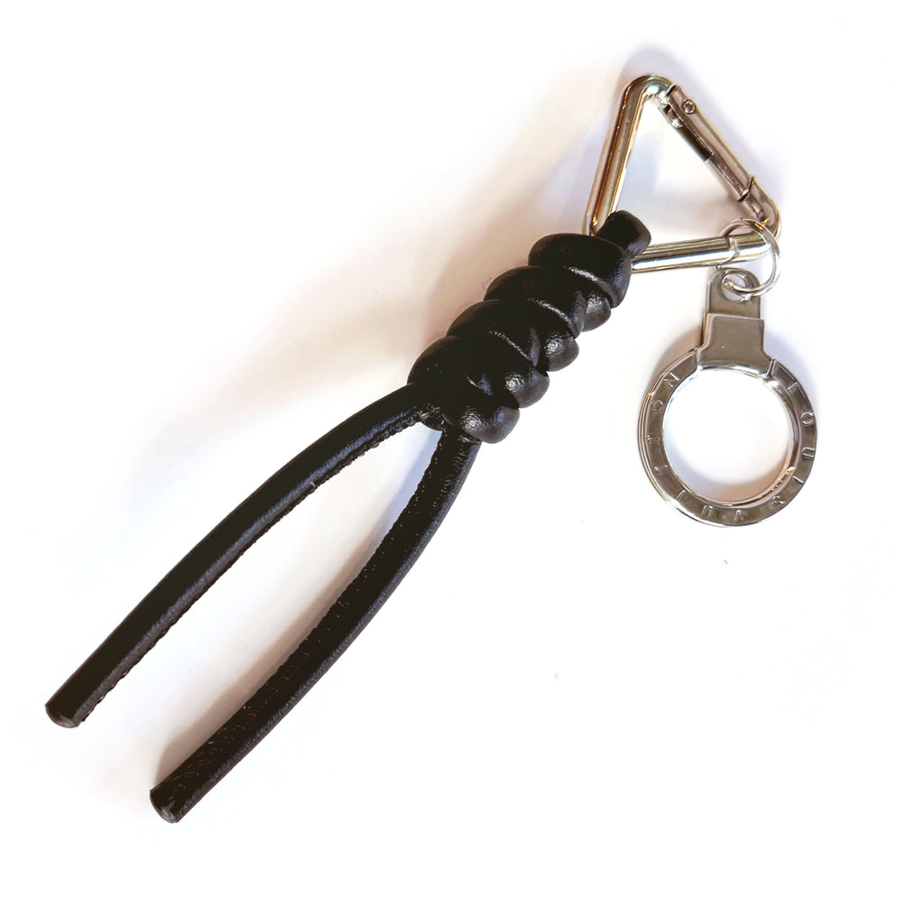 Black Leather Knot Keychain and Silver Louis Vuitton Bag Charm
