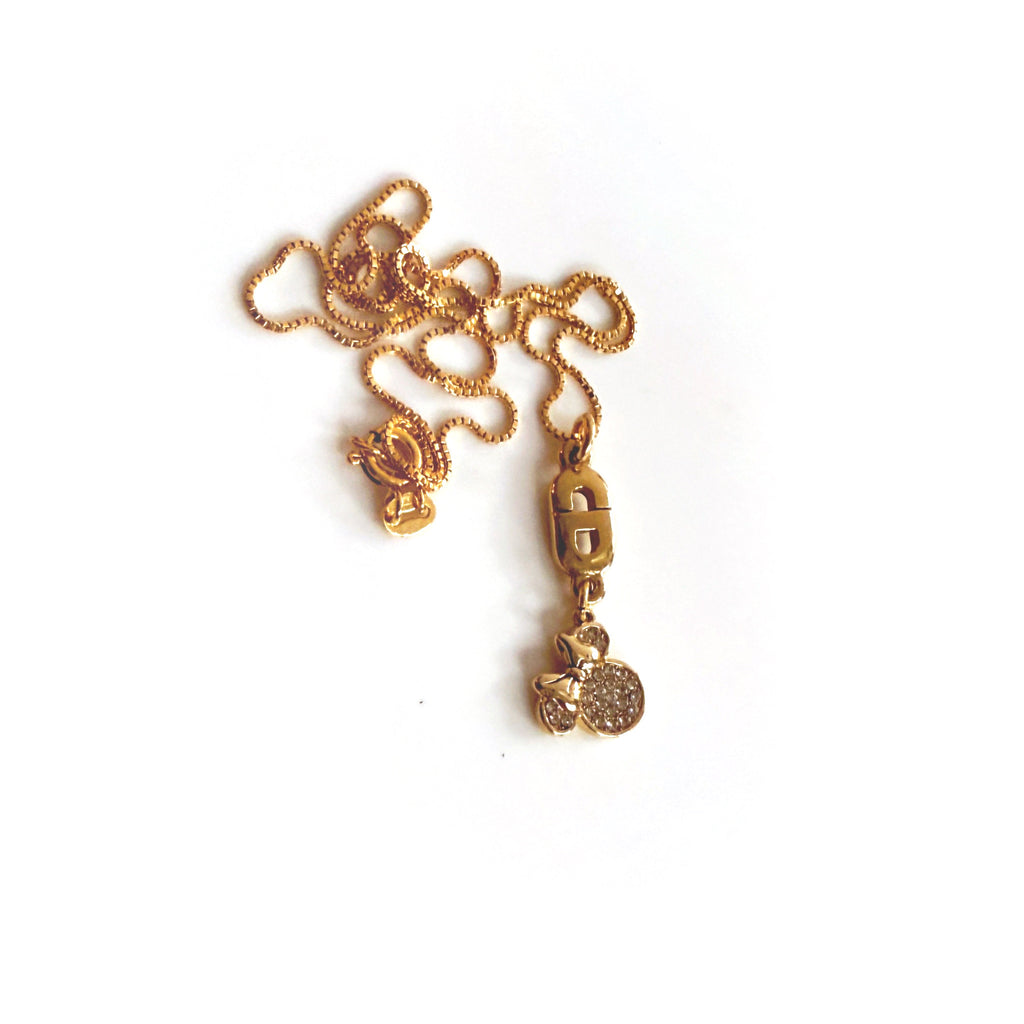 Gold and Rhinestone Minnie Mouse Charm and Vintage Dior “CD” Charm Necklace