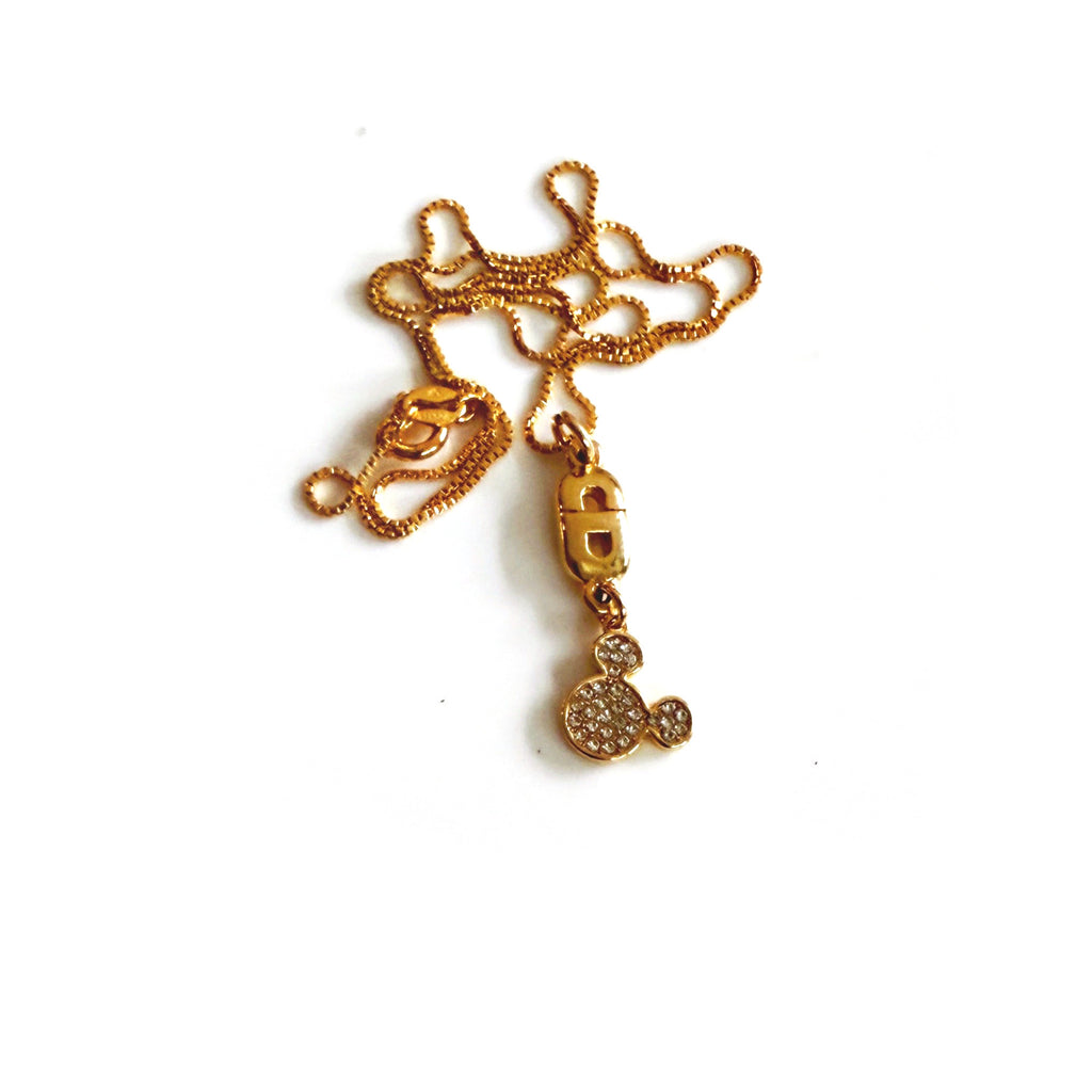 Gold and Rhinestone Mickey Mouse Charm and Vintage Dior “CD” Charm Necklace