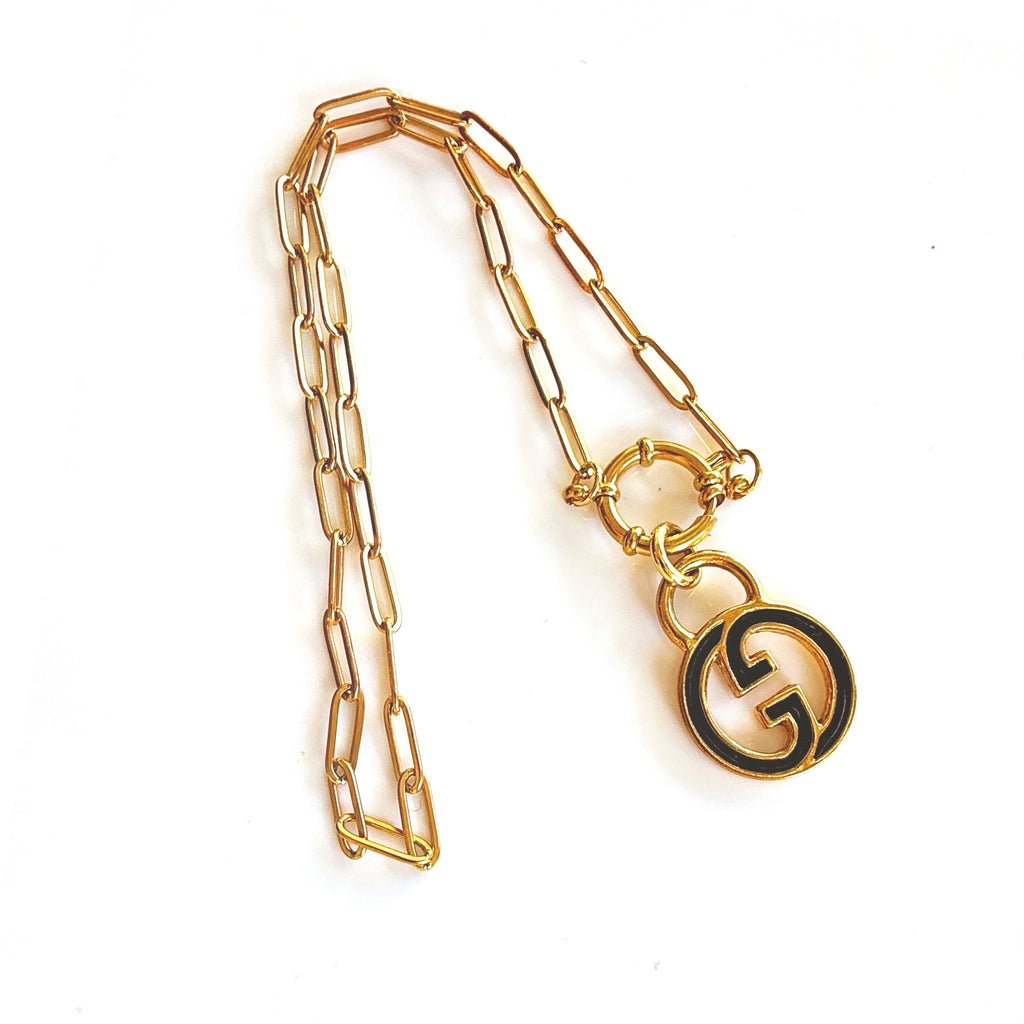 Vintage Large Gold Cutout Gucci Charm and Toggle Necklace