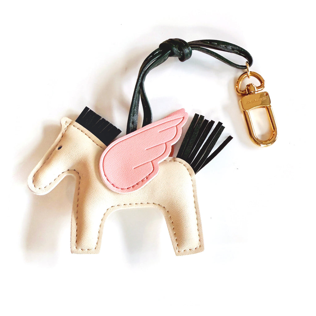 White Leather Horse and Gold Louis Vuitton Bag Charm