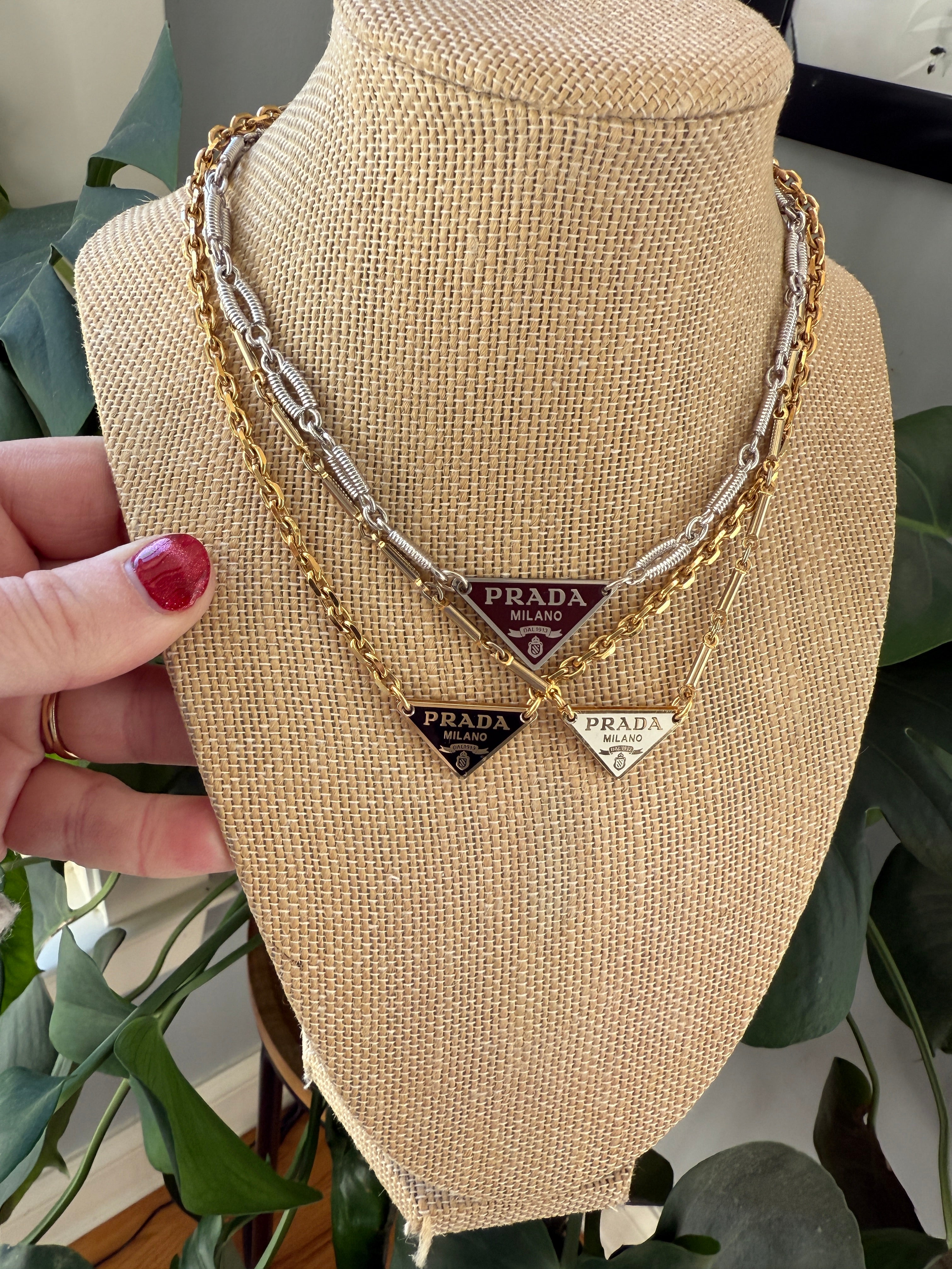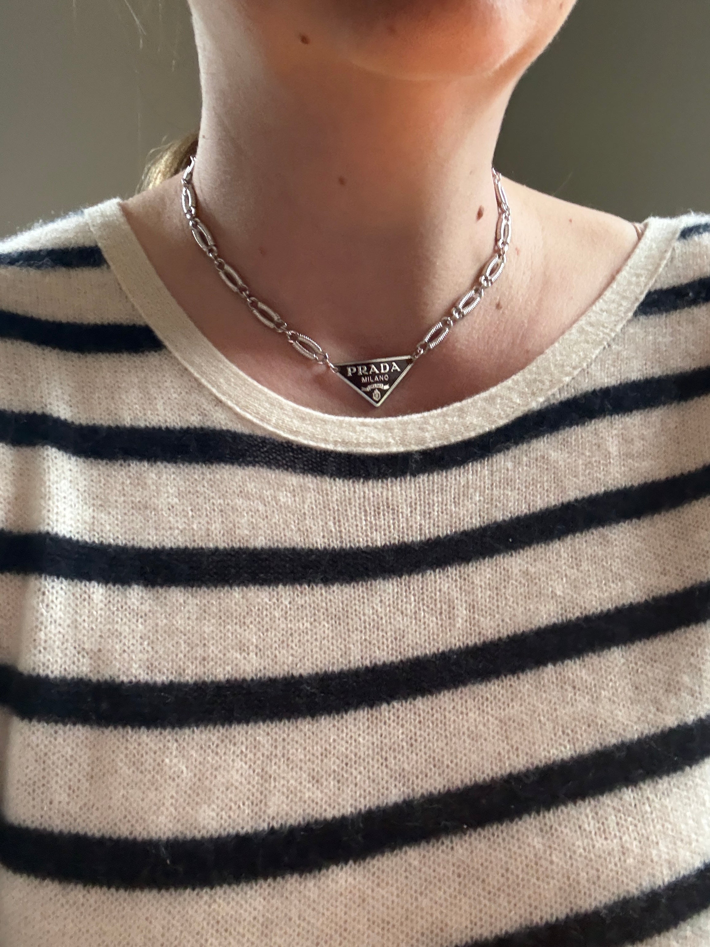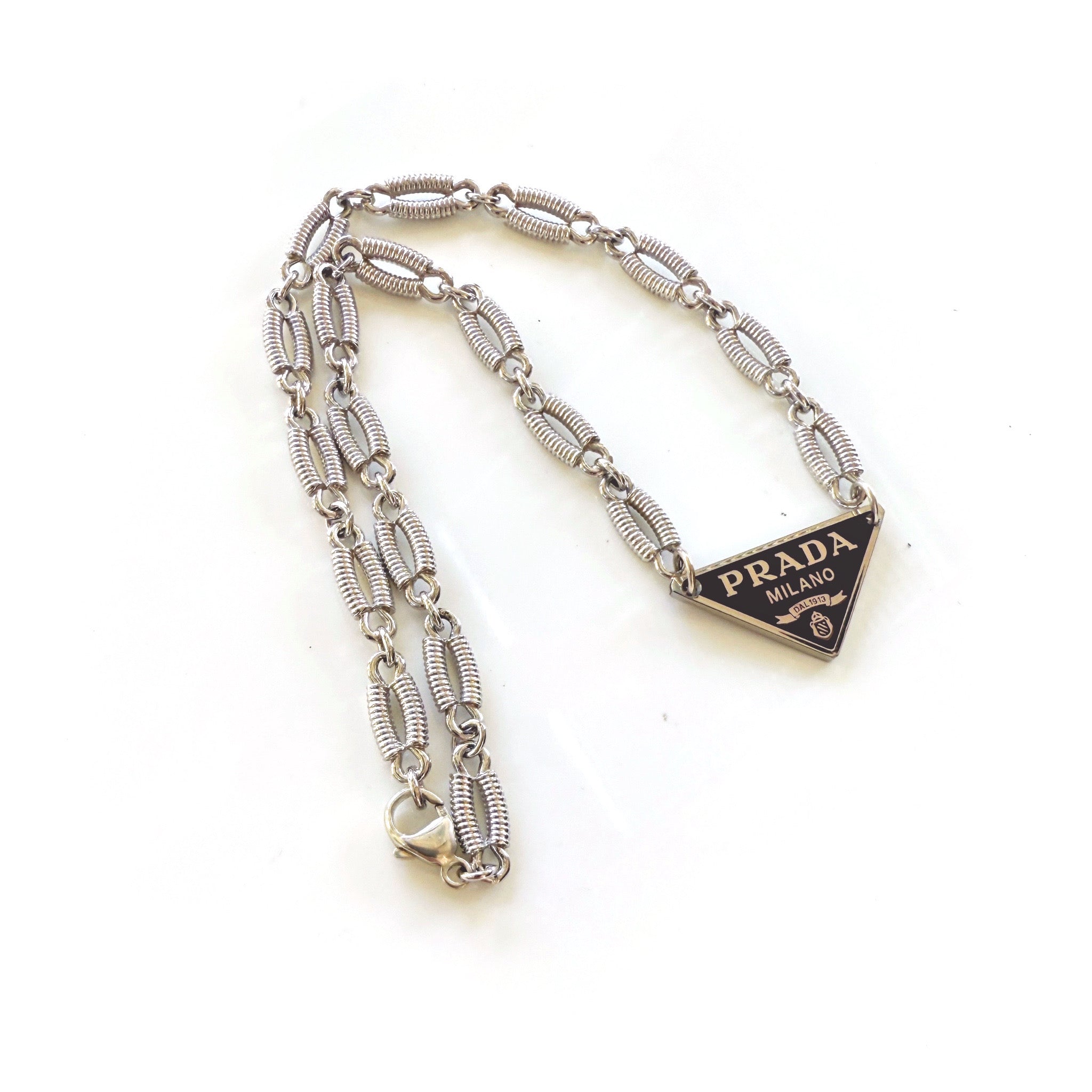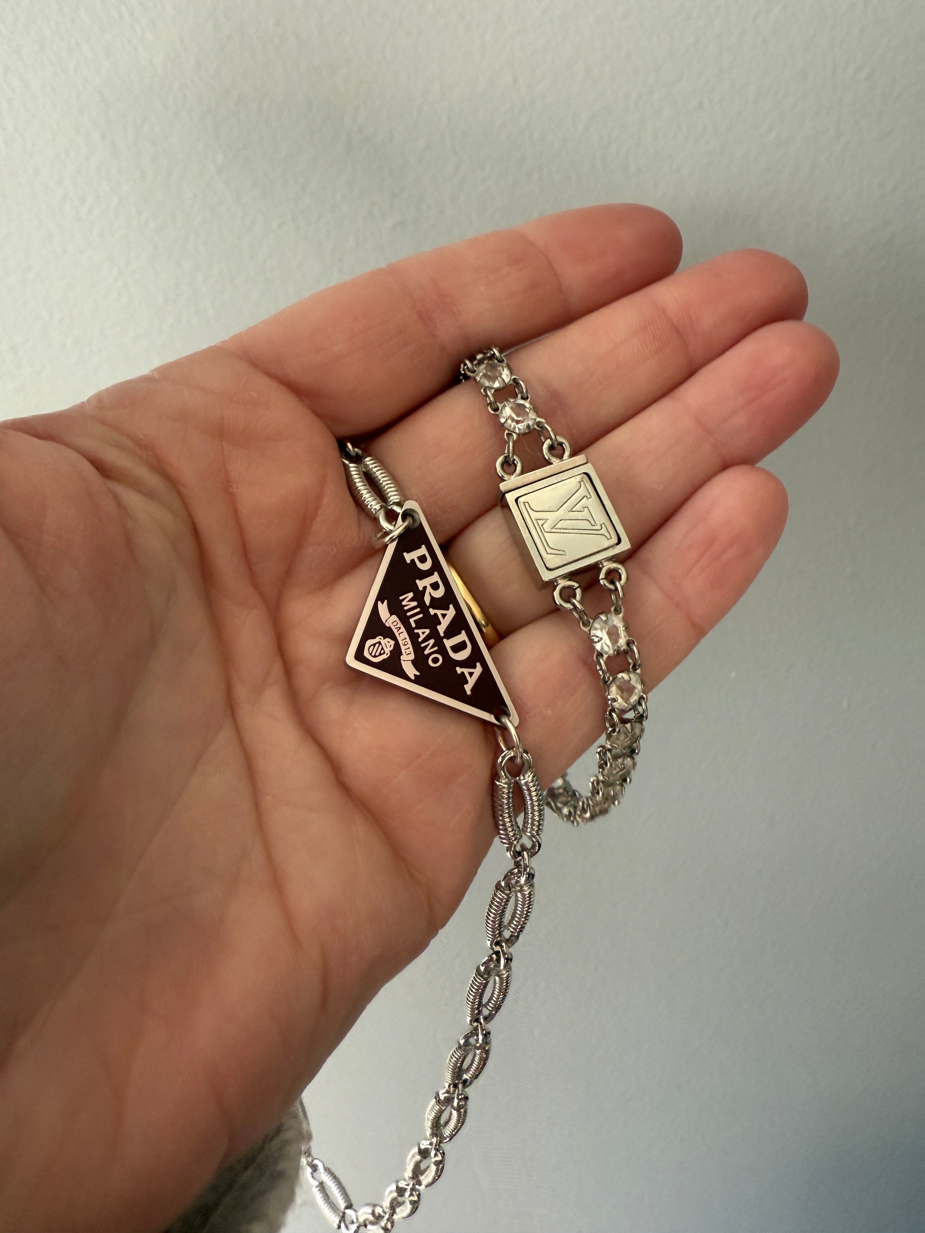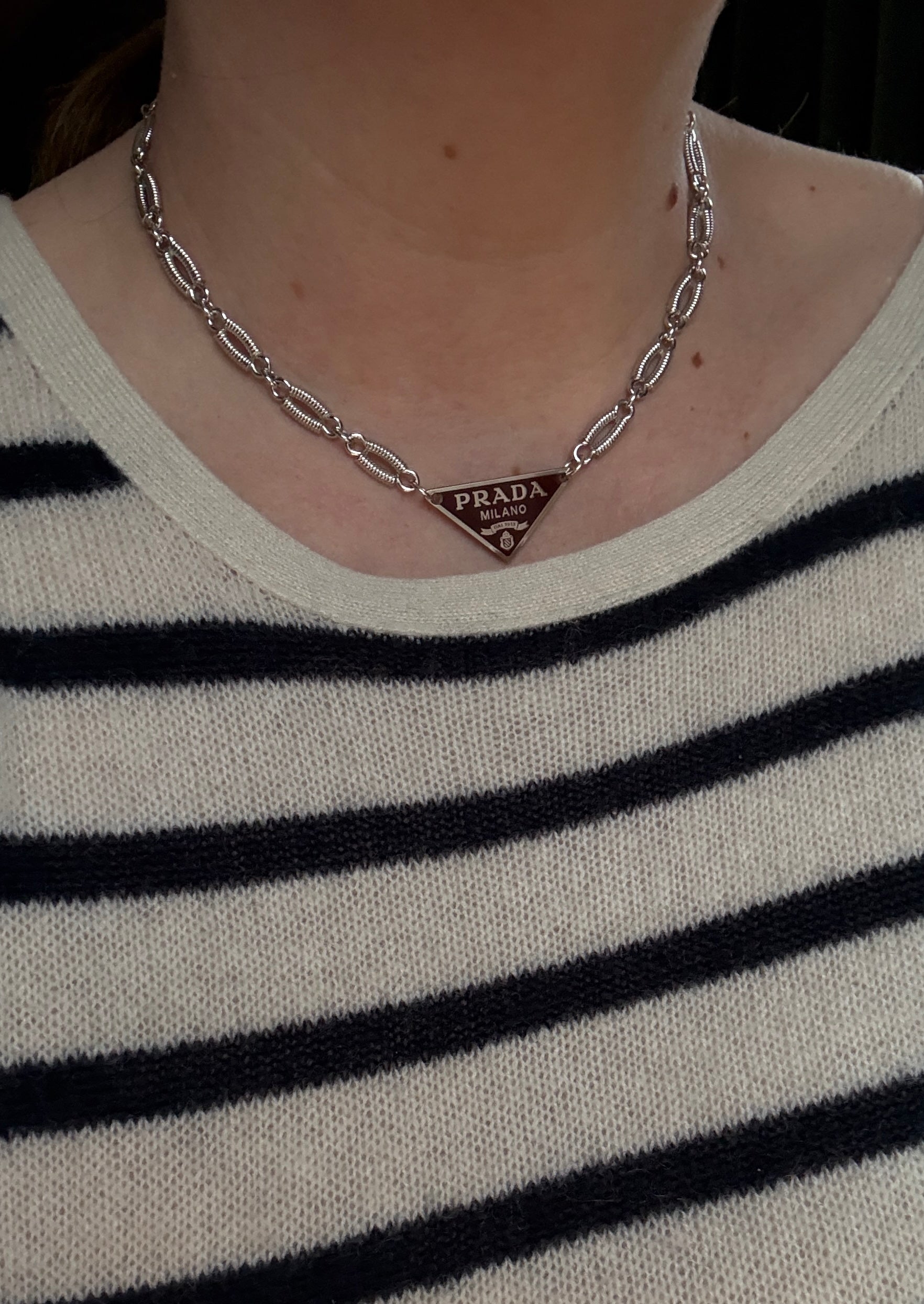 Silver and Chocolate Brown Prada Charm Short Necklace