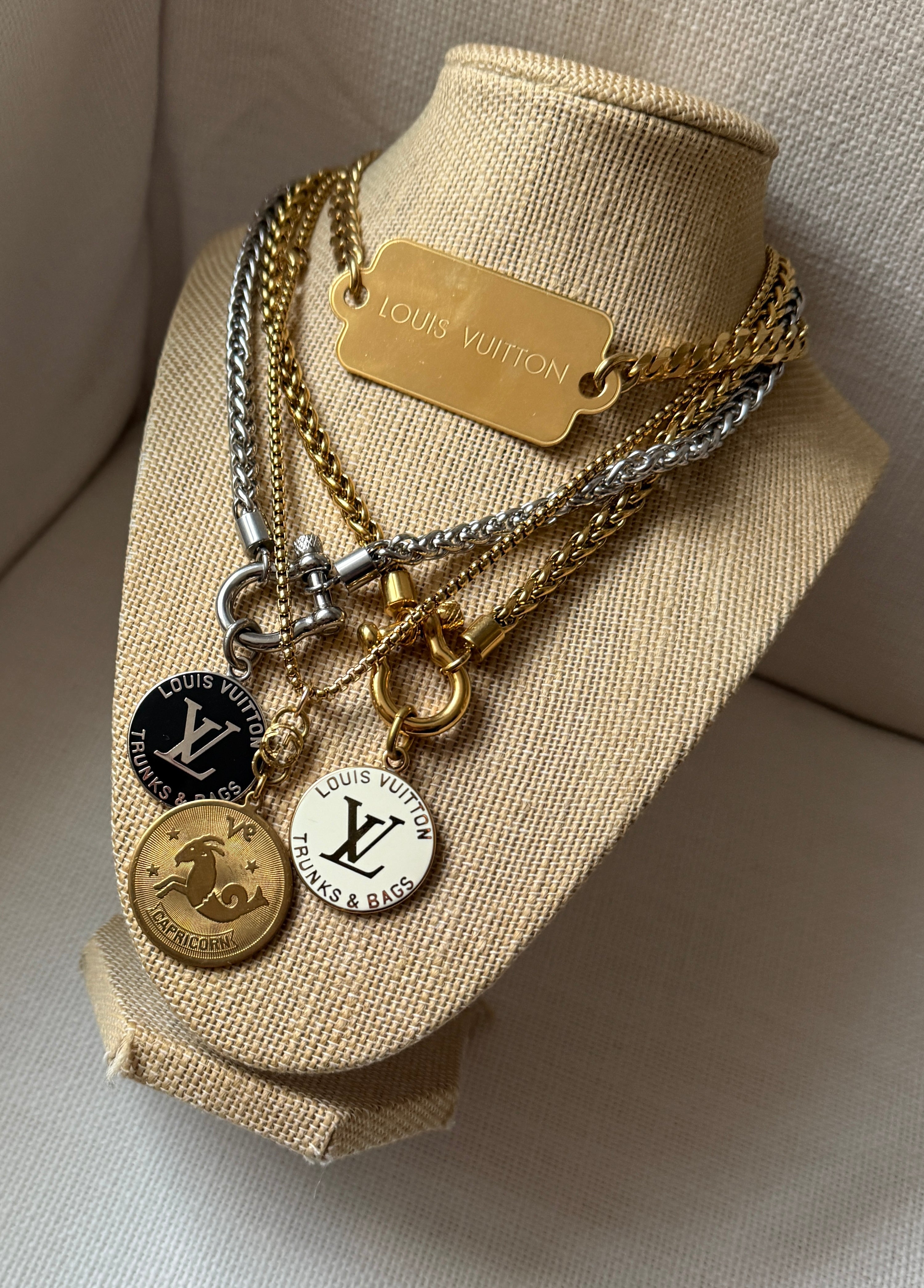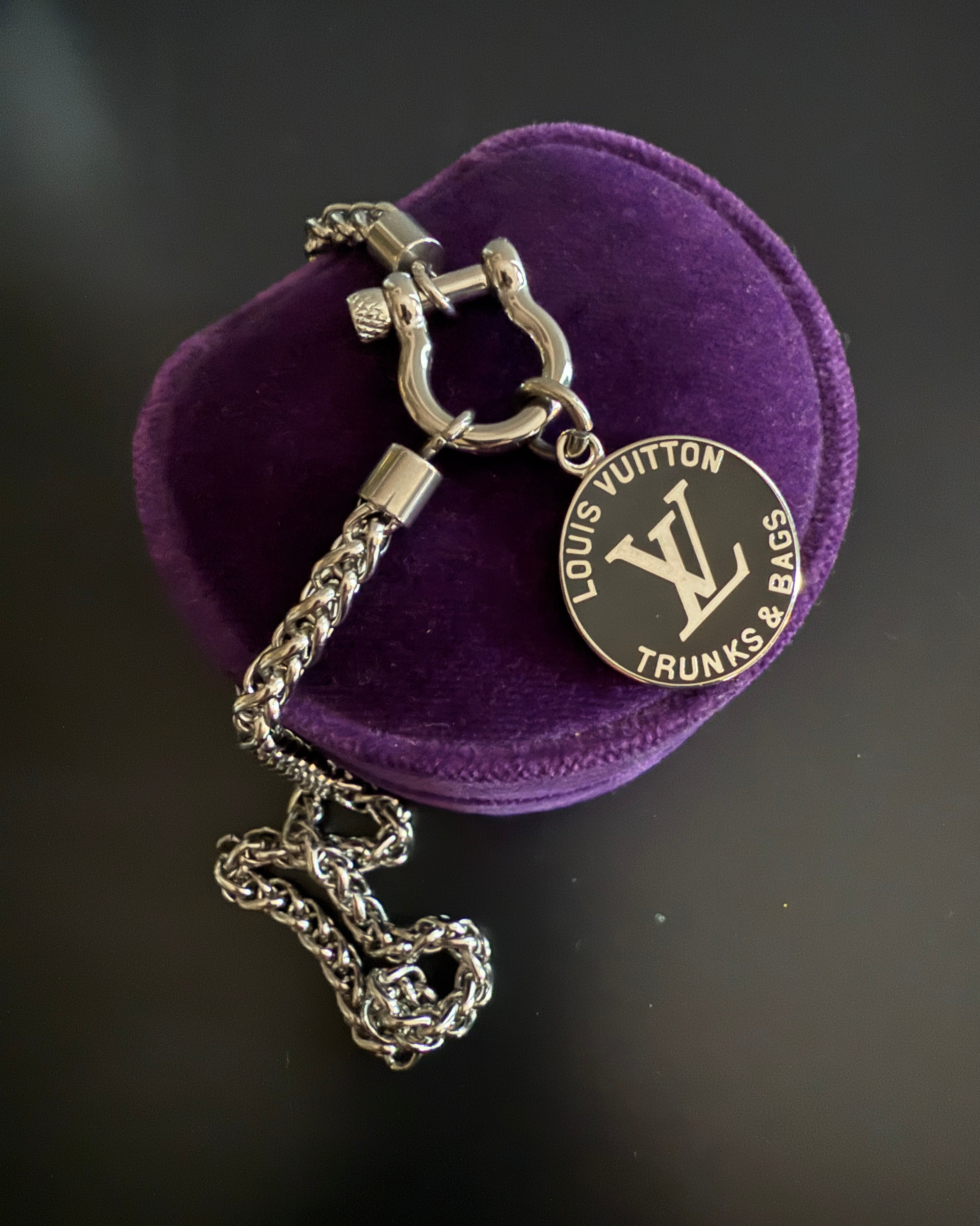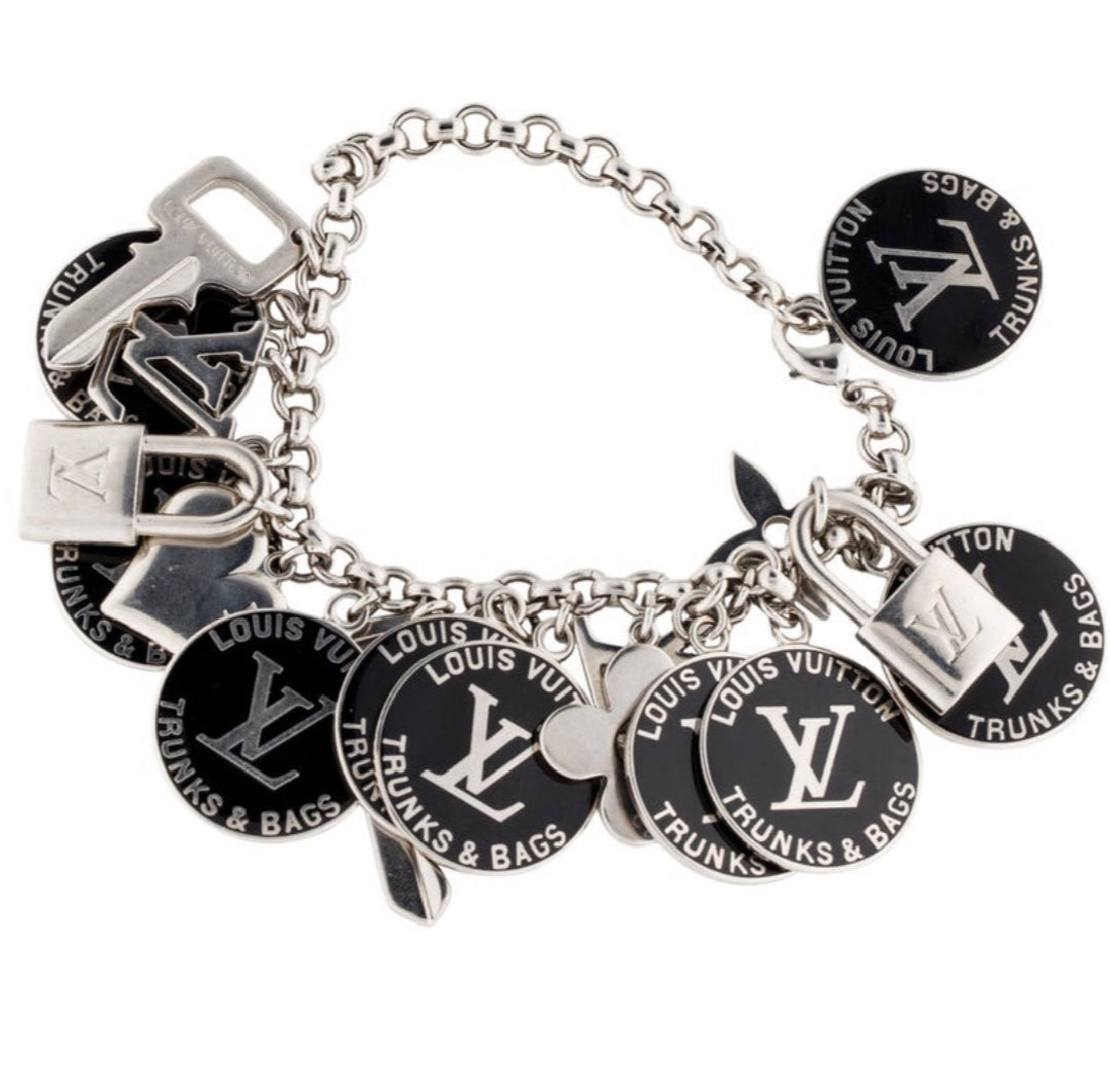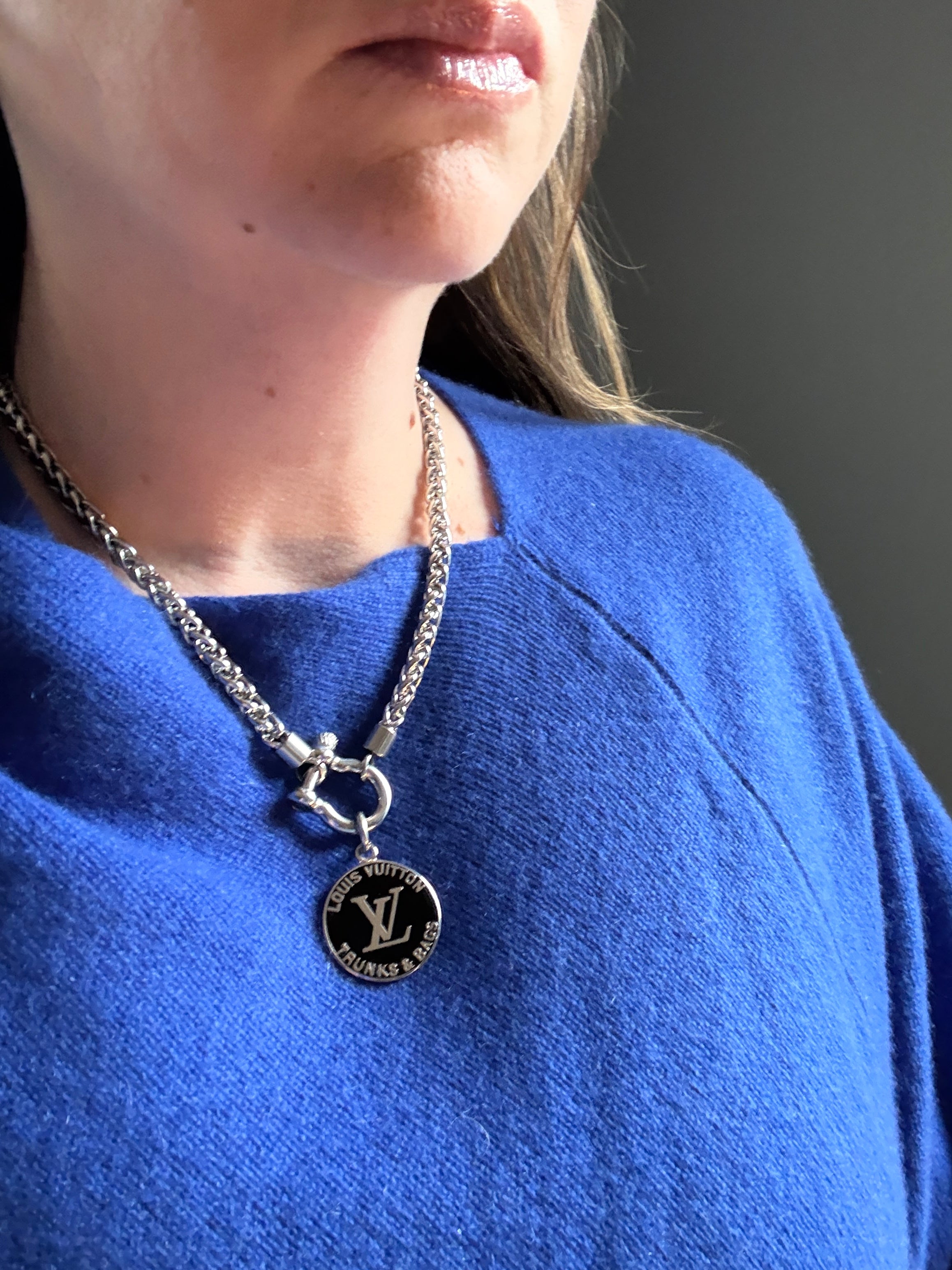 Black and Silver Louis Vuitton Charm Chunky Statement Necklace