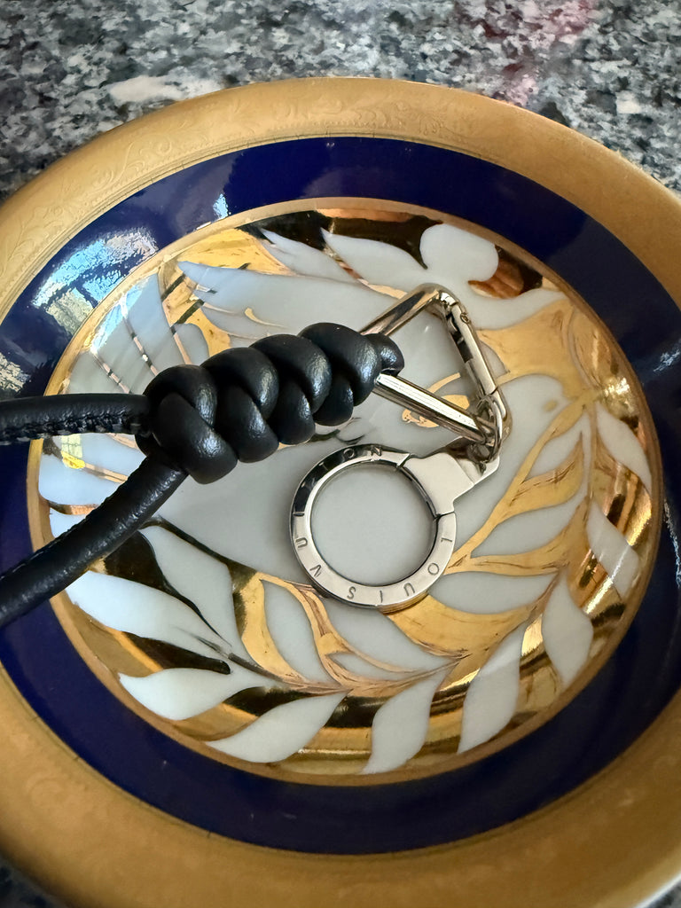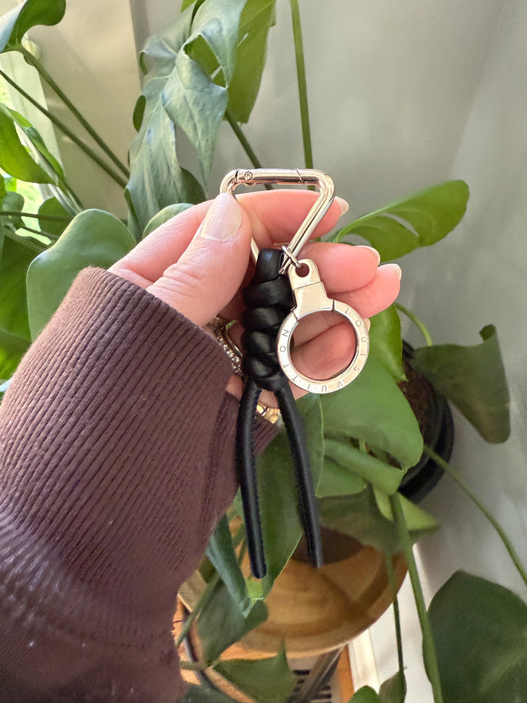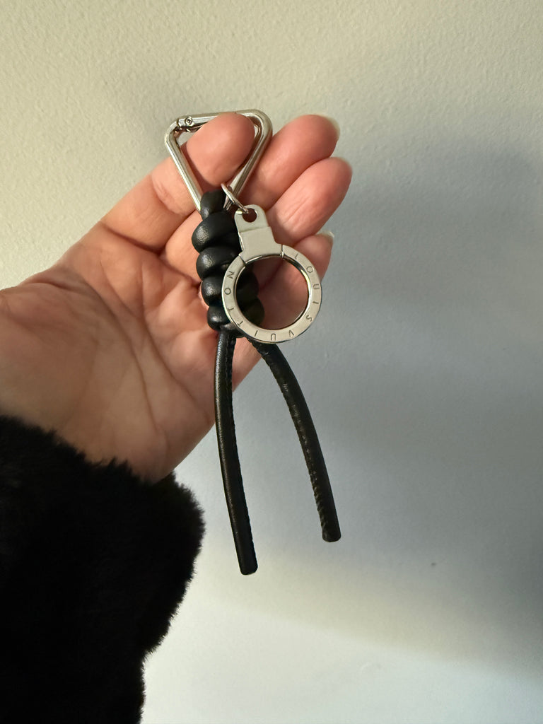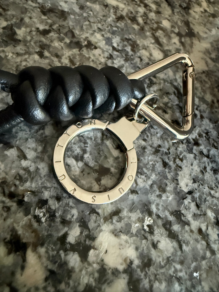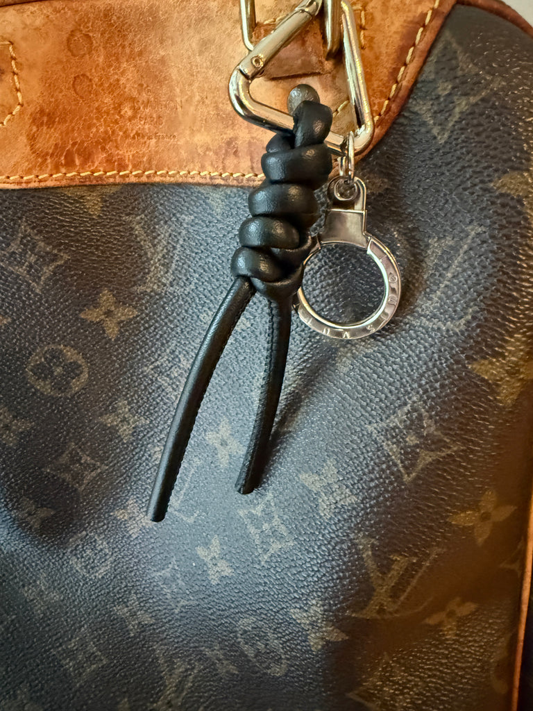 Black Leather Knot Keychain and Silver Louis Vuitton Bag Charm