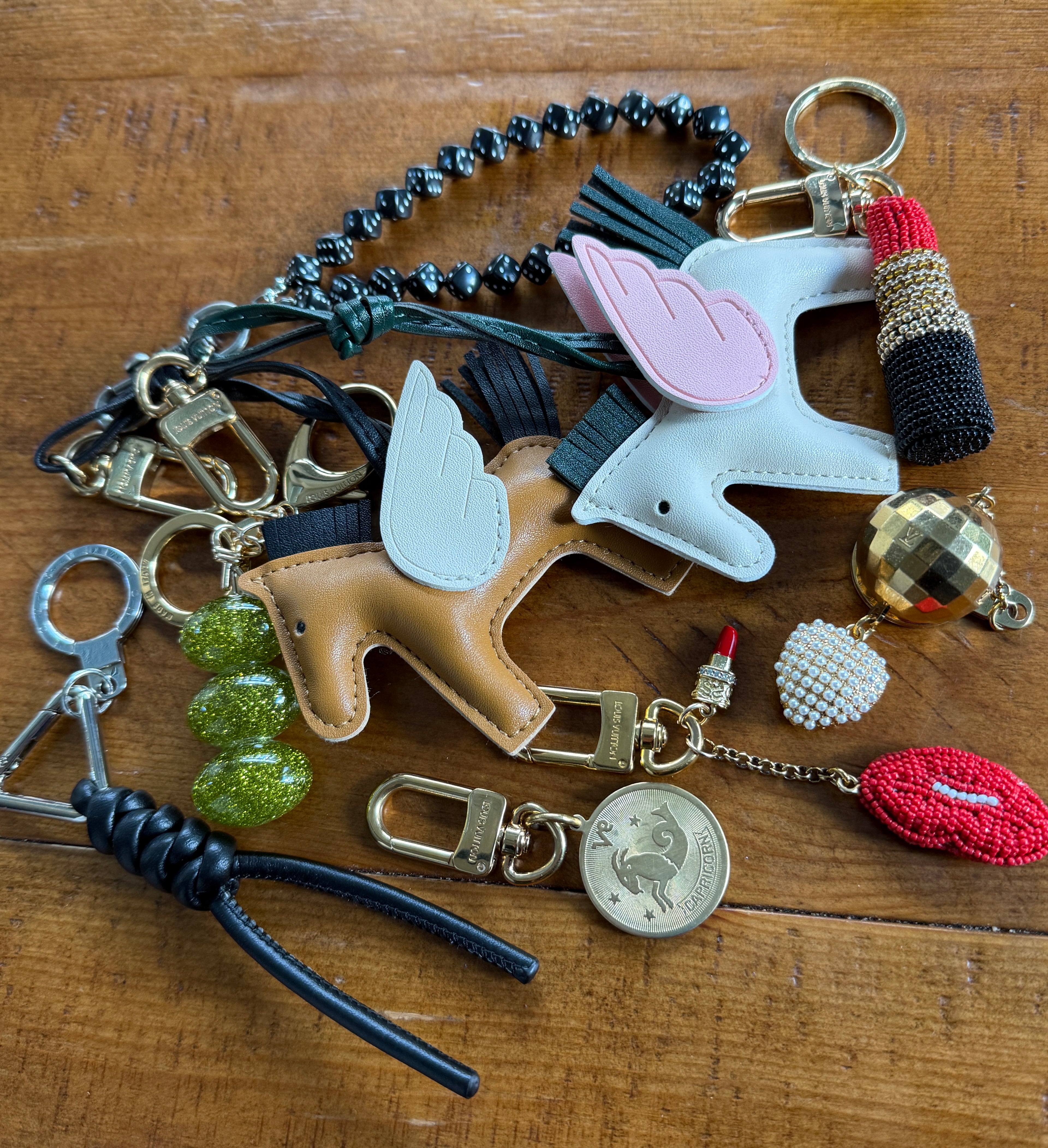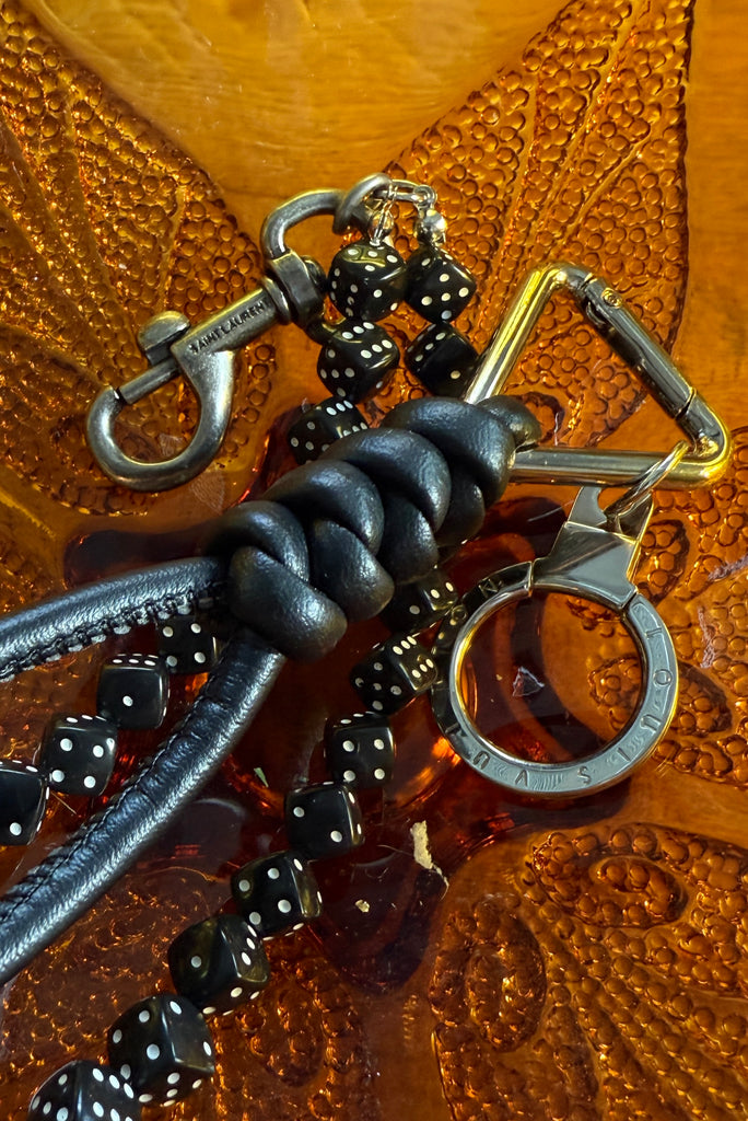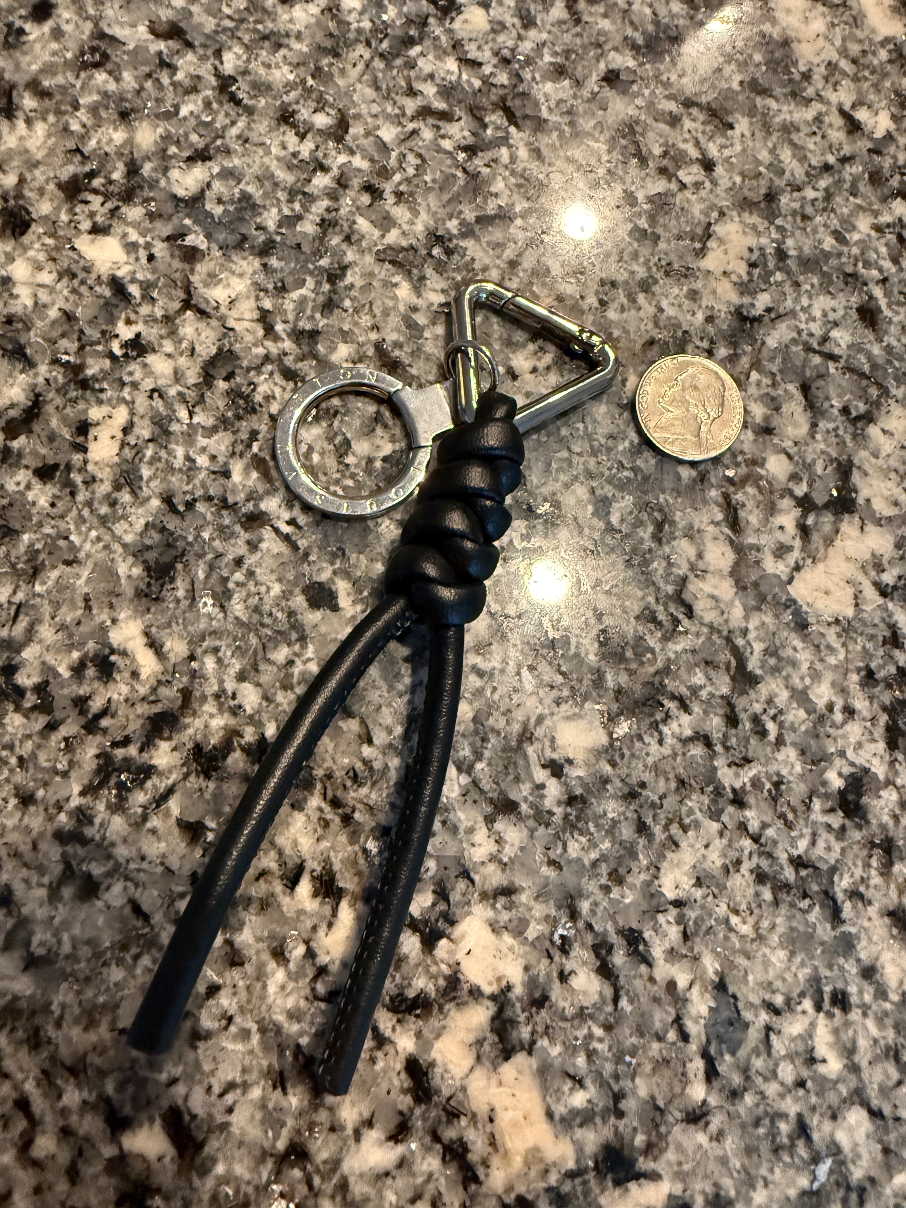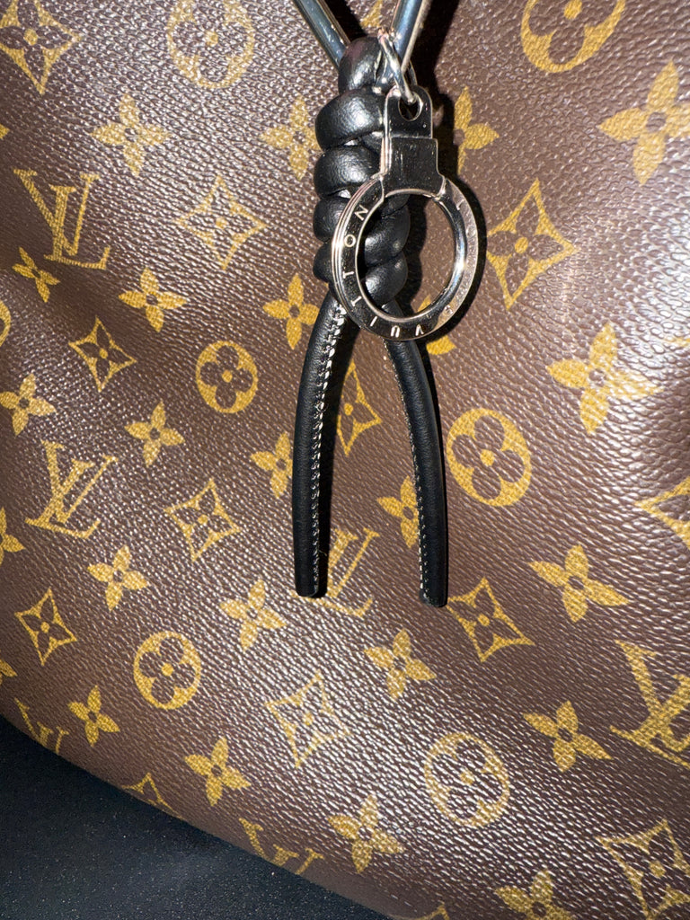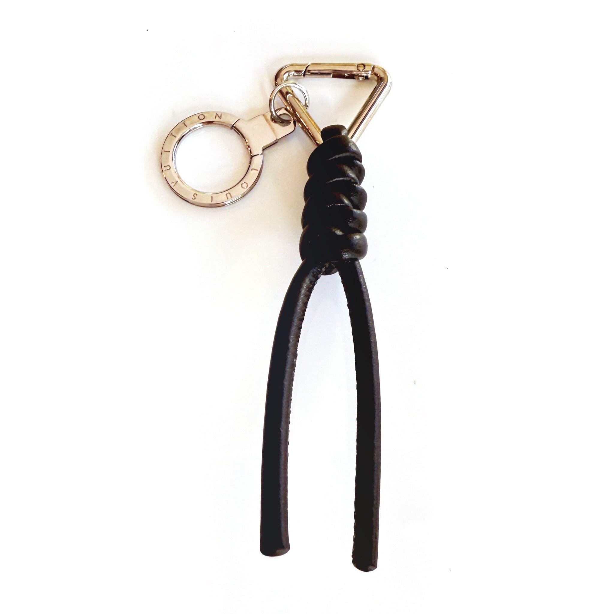 Black Leather Knot Keychain and Silver Louis Vuitton Bag Charm
