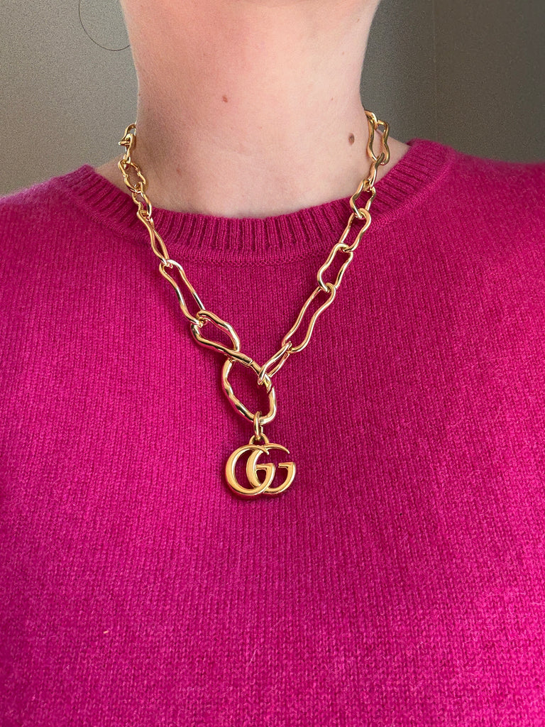 Large Gold Gucci Cutout “GG” Statement Necklace