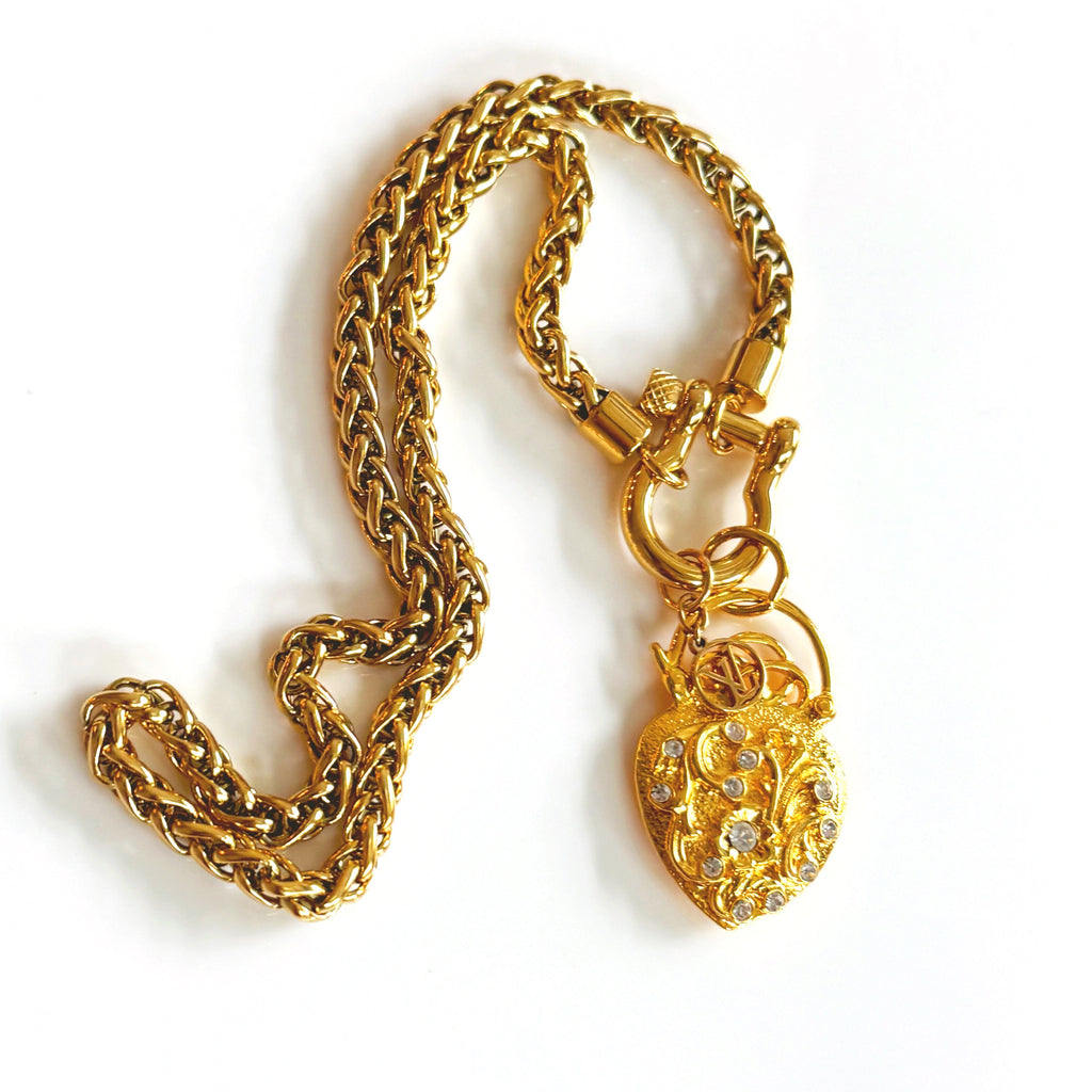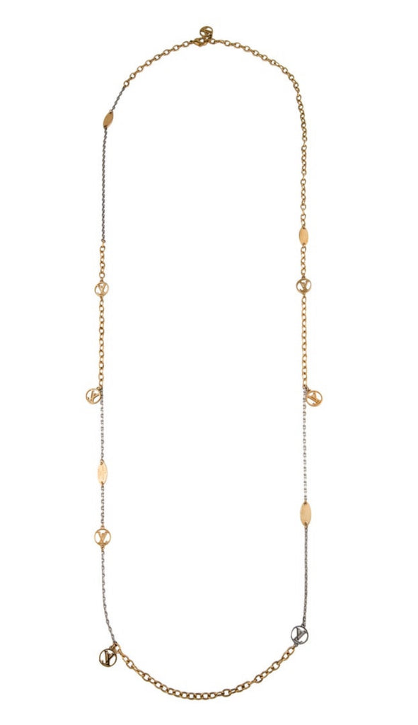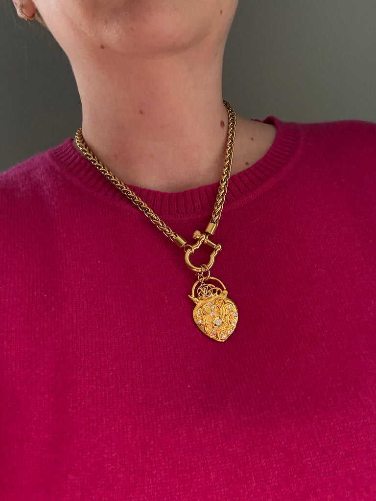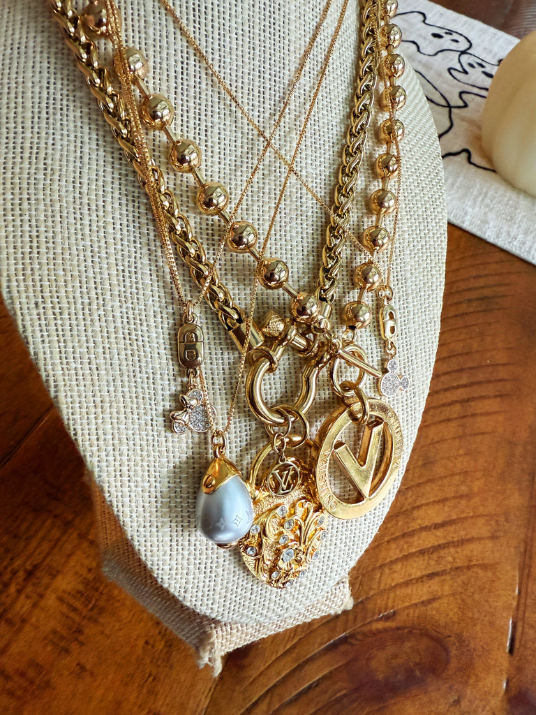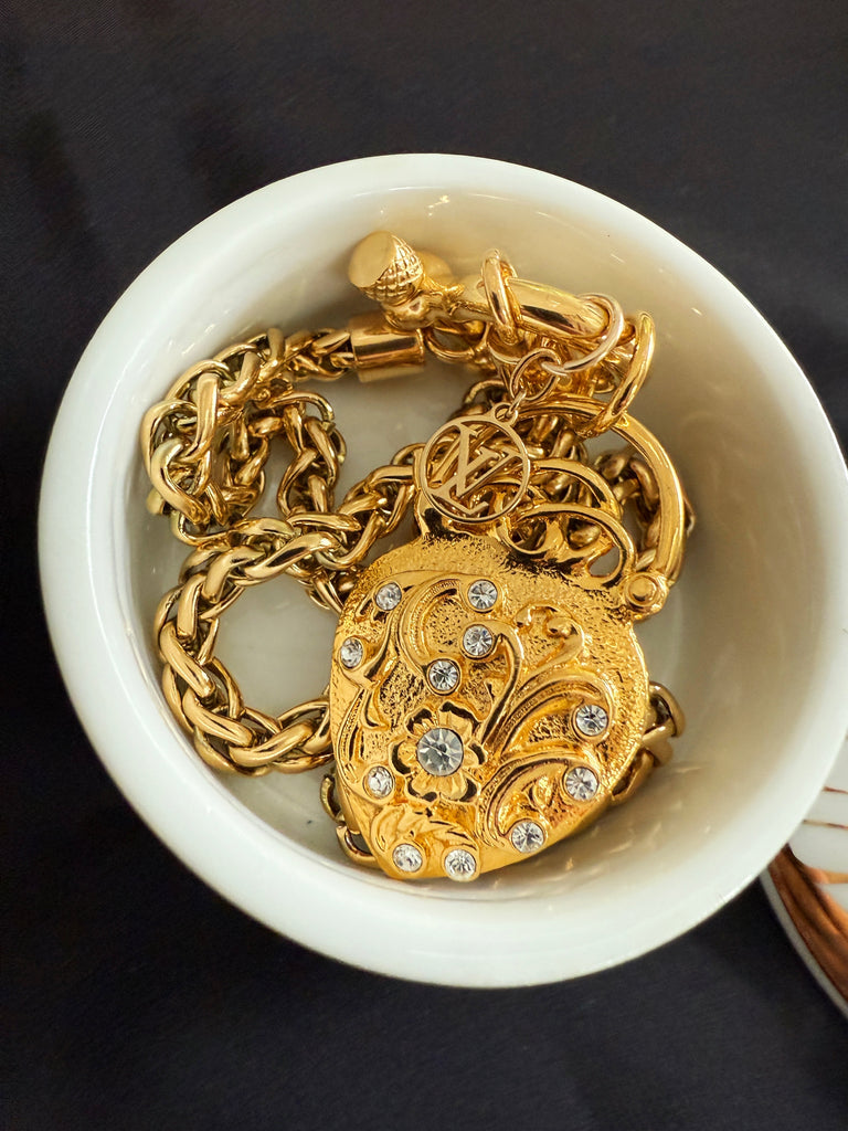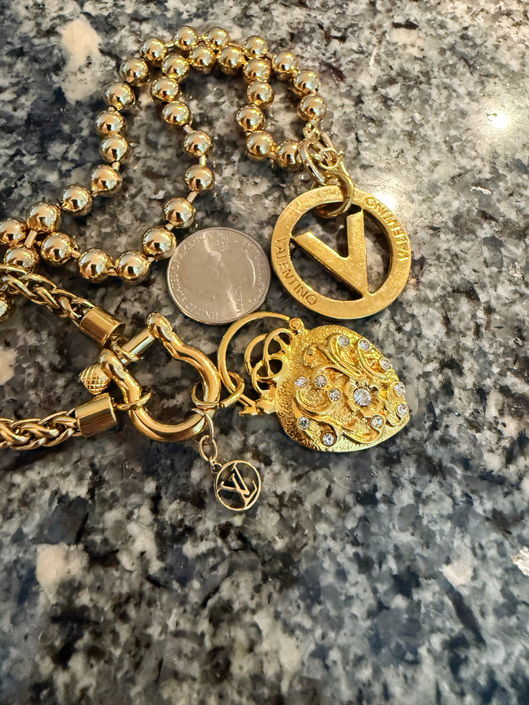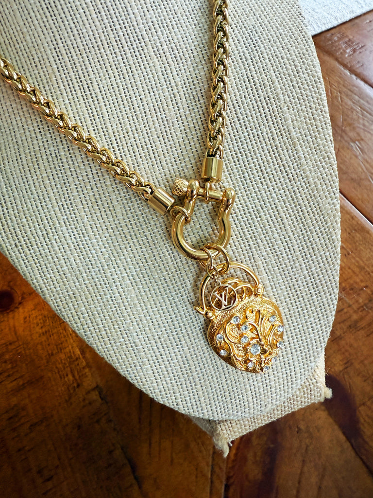 Large Vintage Rhinestone Charm and Tiny Louis Vuitton “LV” Charm Chunky Chain Necklace