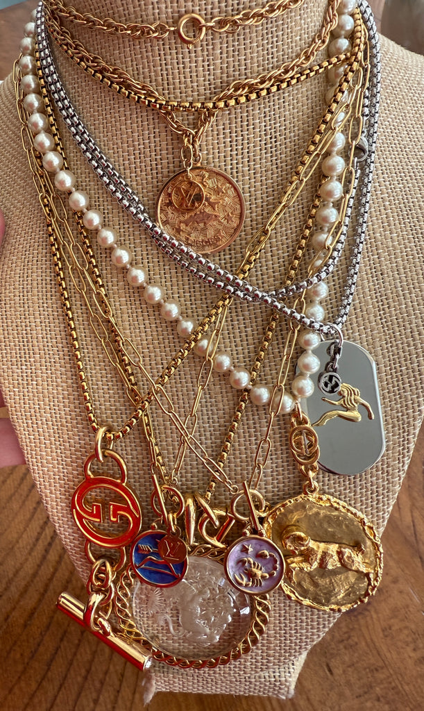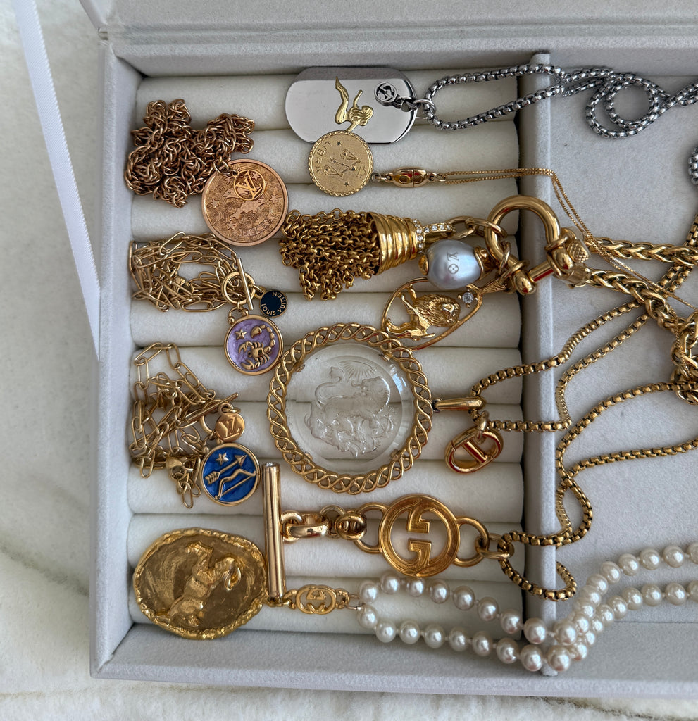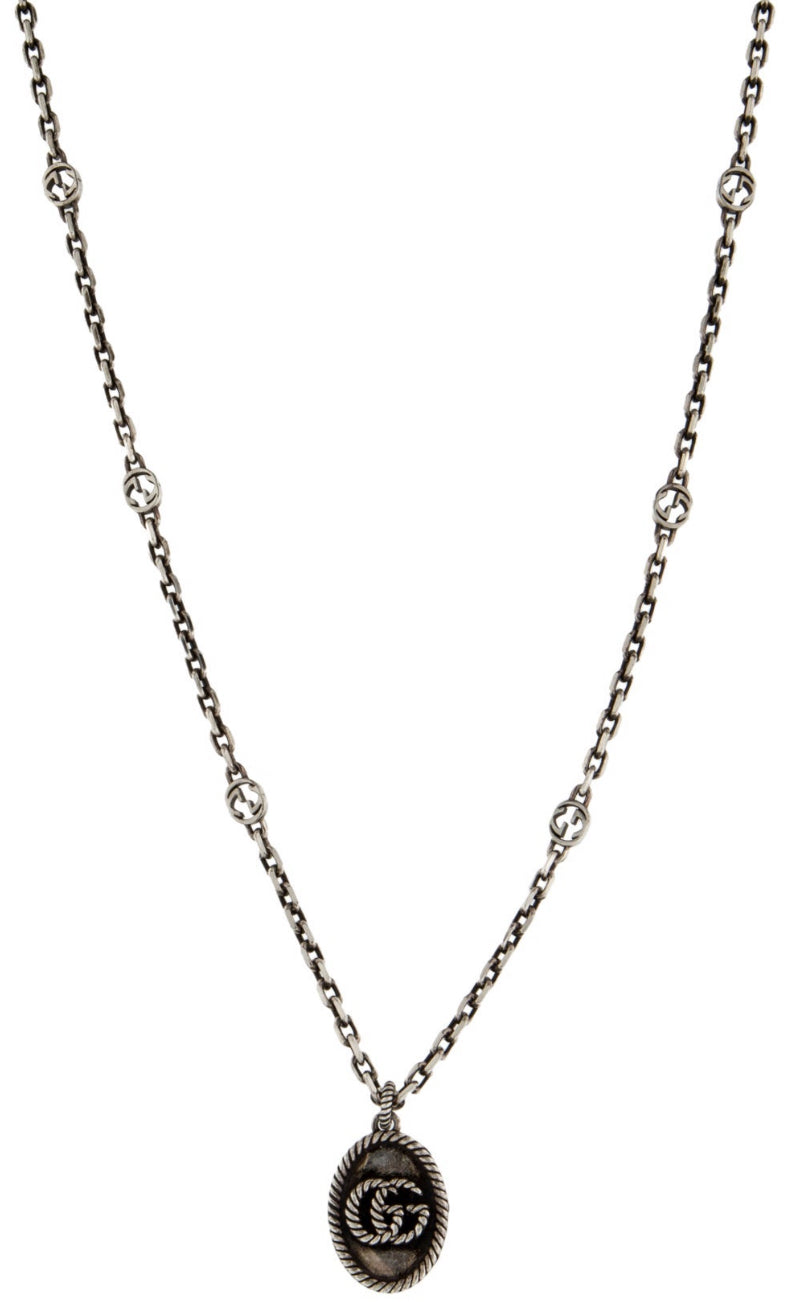 Mixed Metal Virgo Charm and Tiny Silver Gucci Cutout Charm Necklace