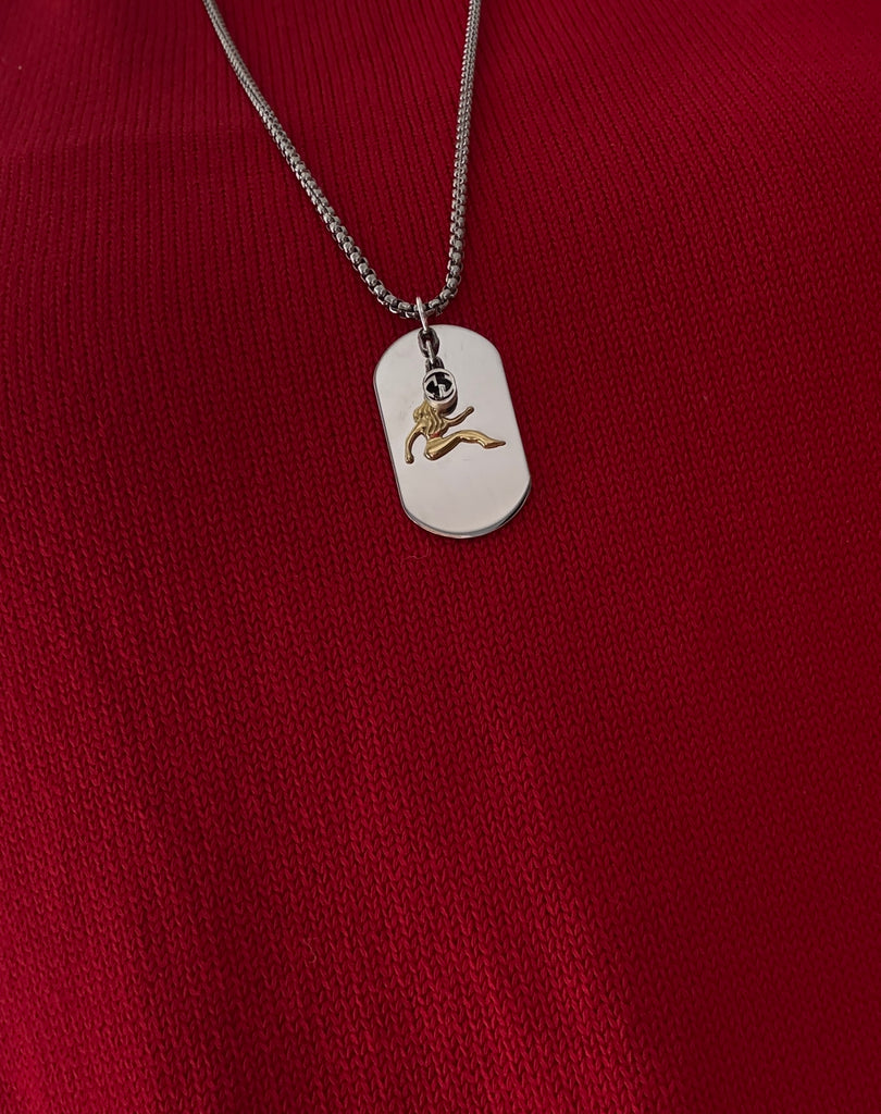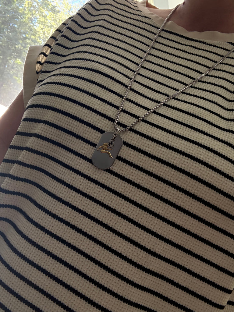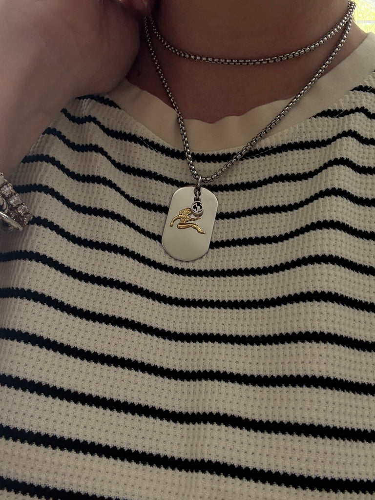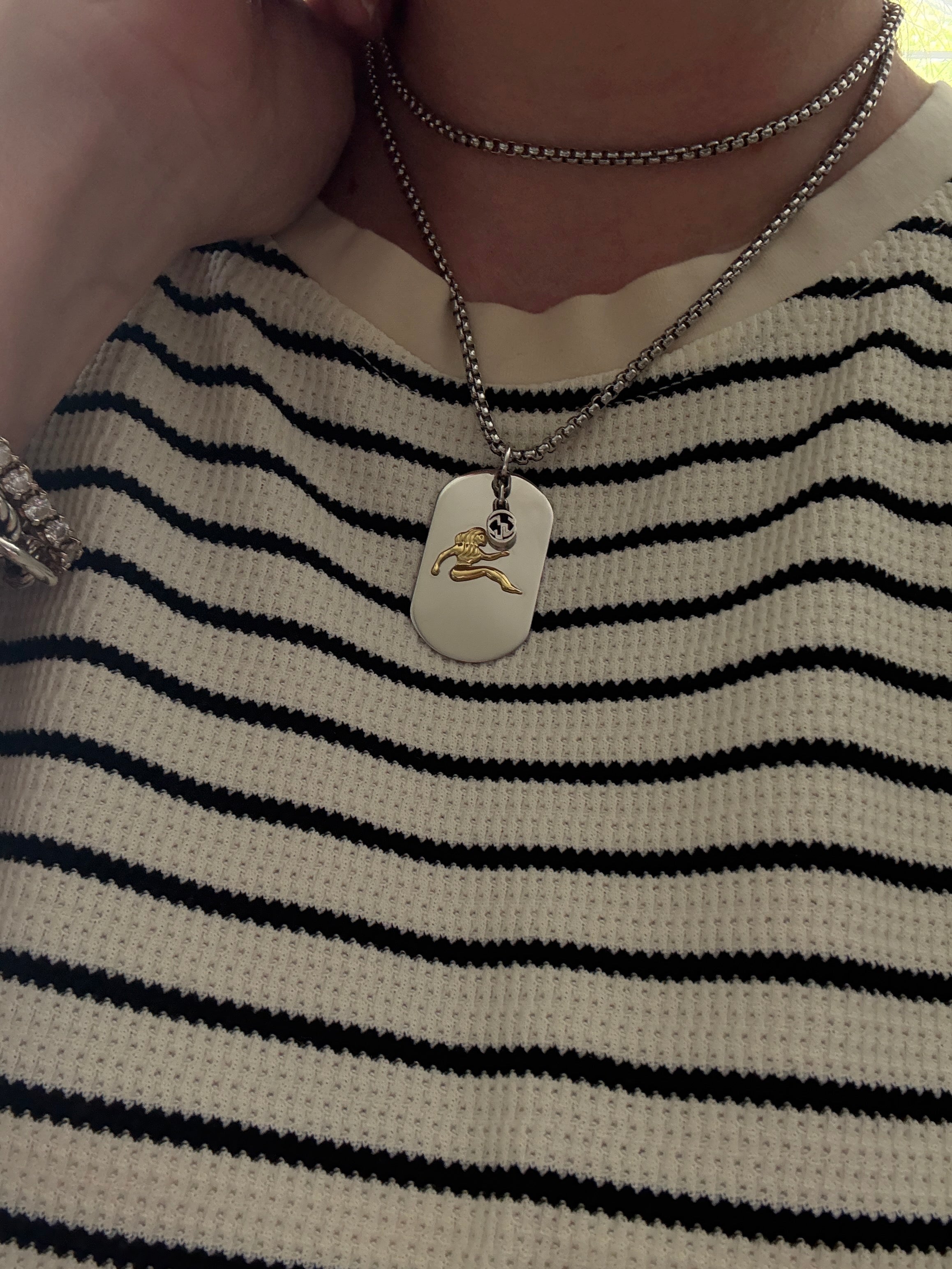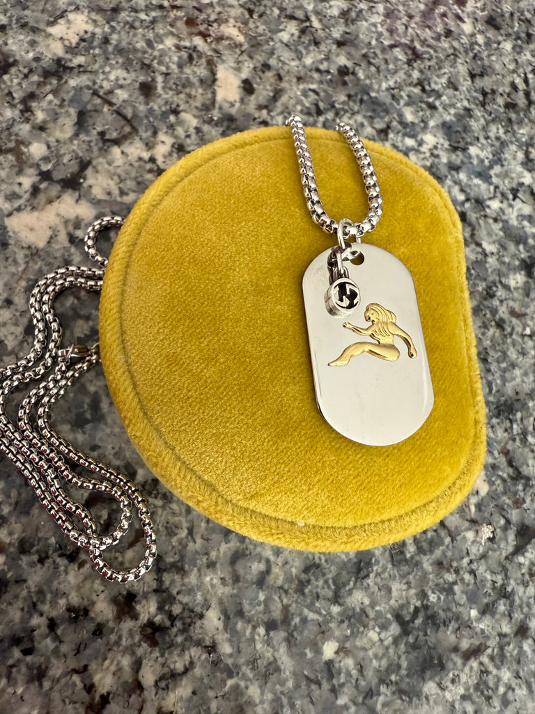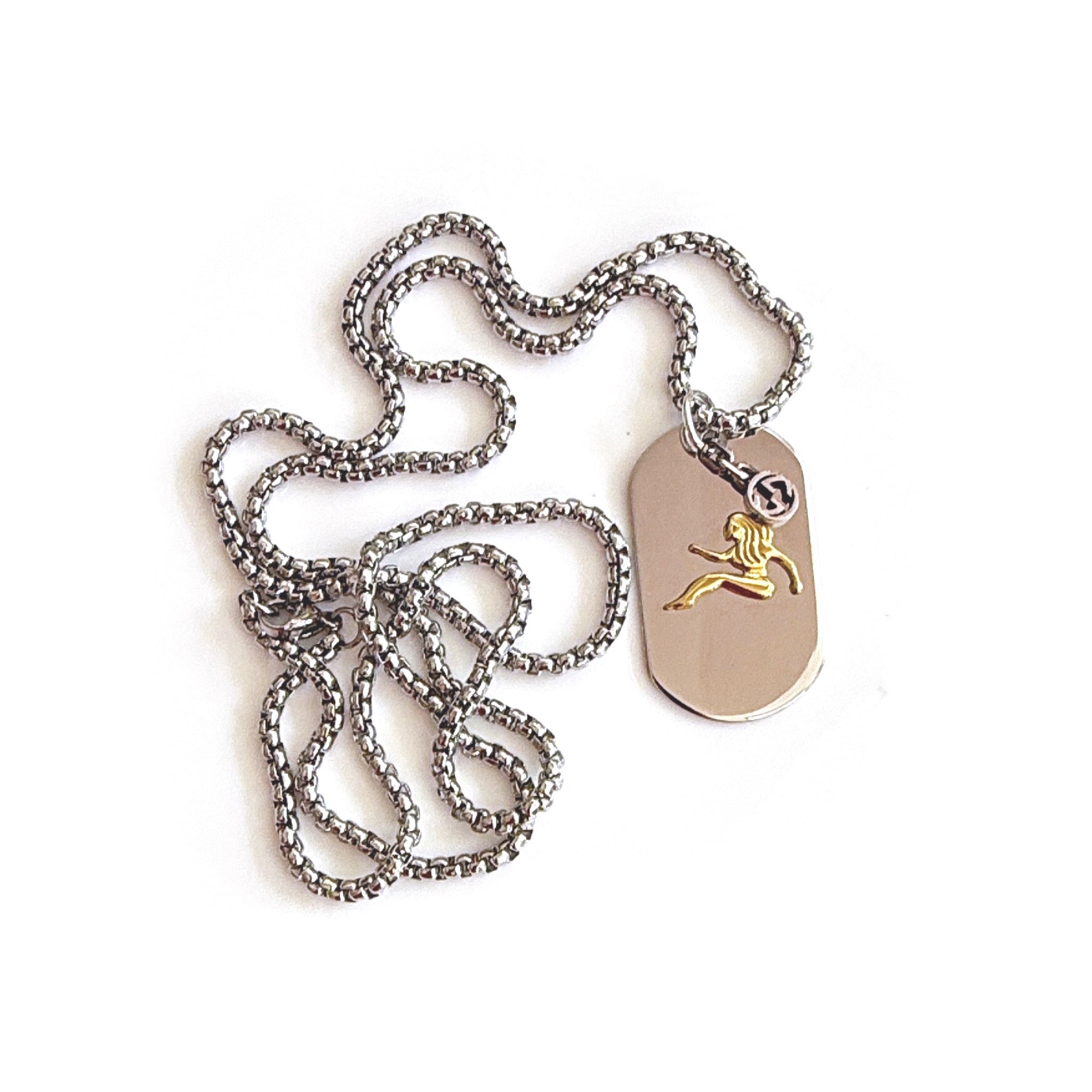 **Also features a large stainless steel and brass Virgo charm dog tag