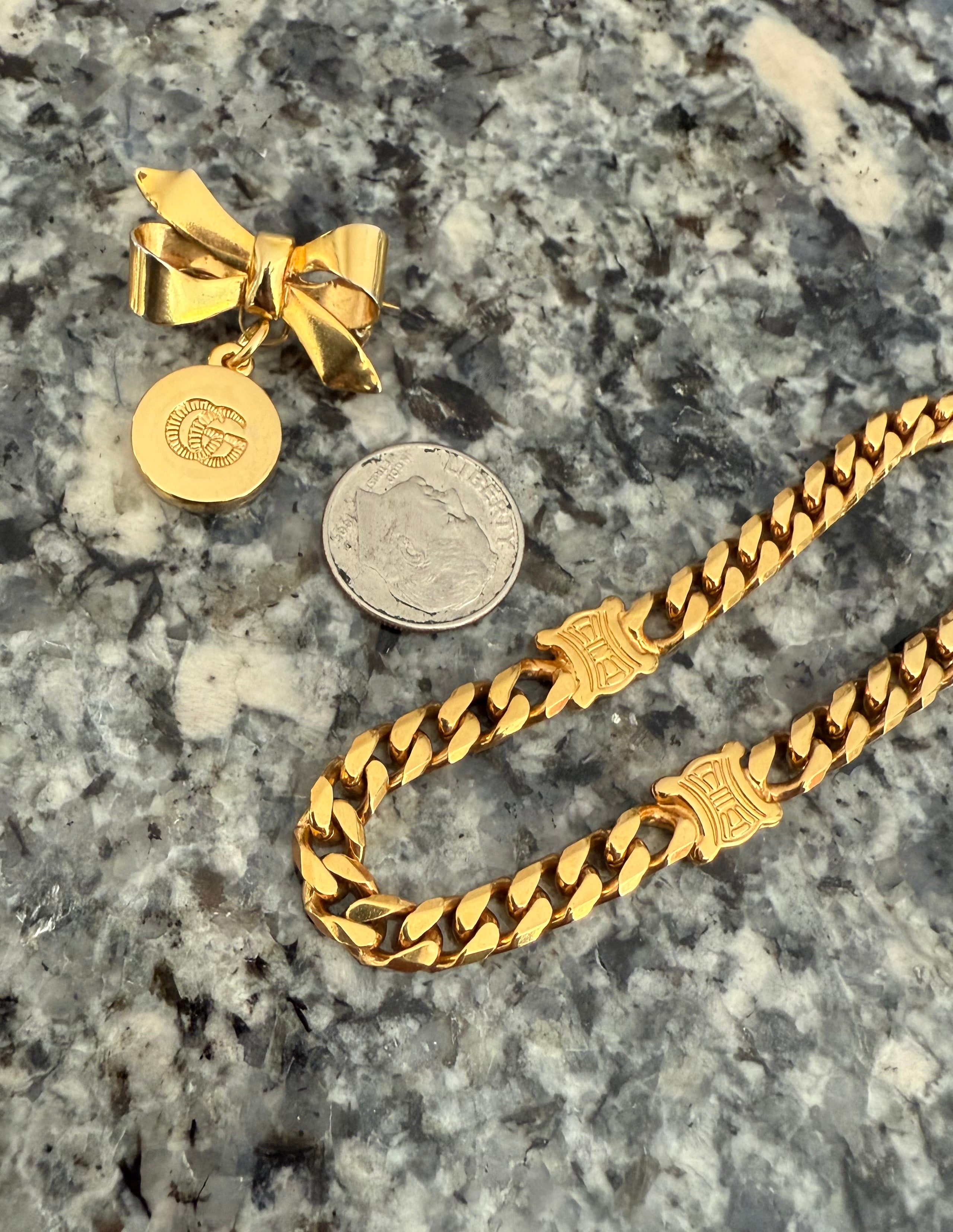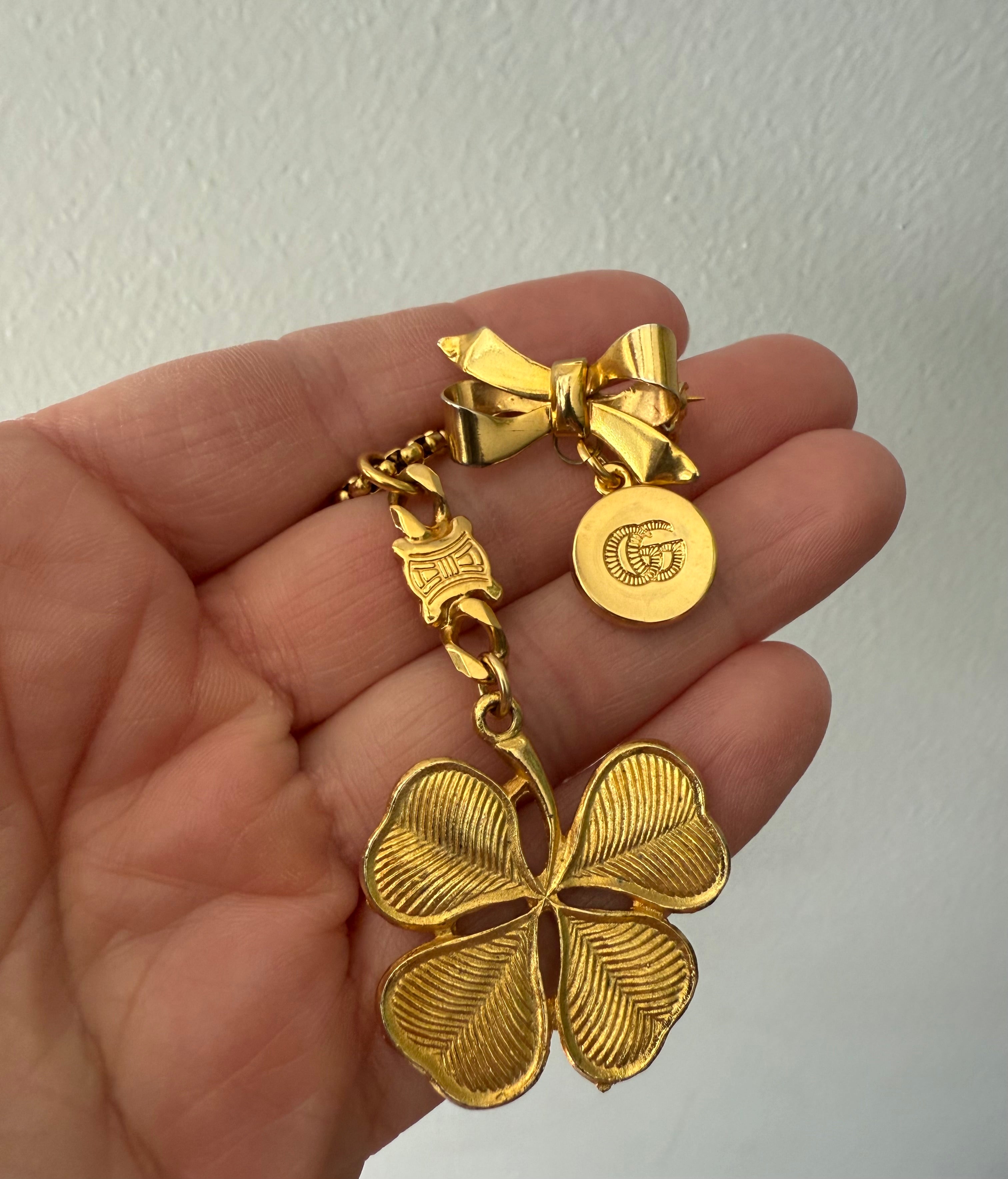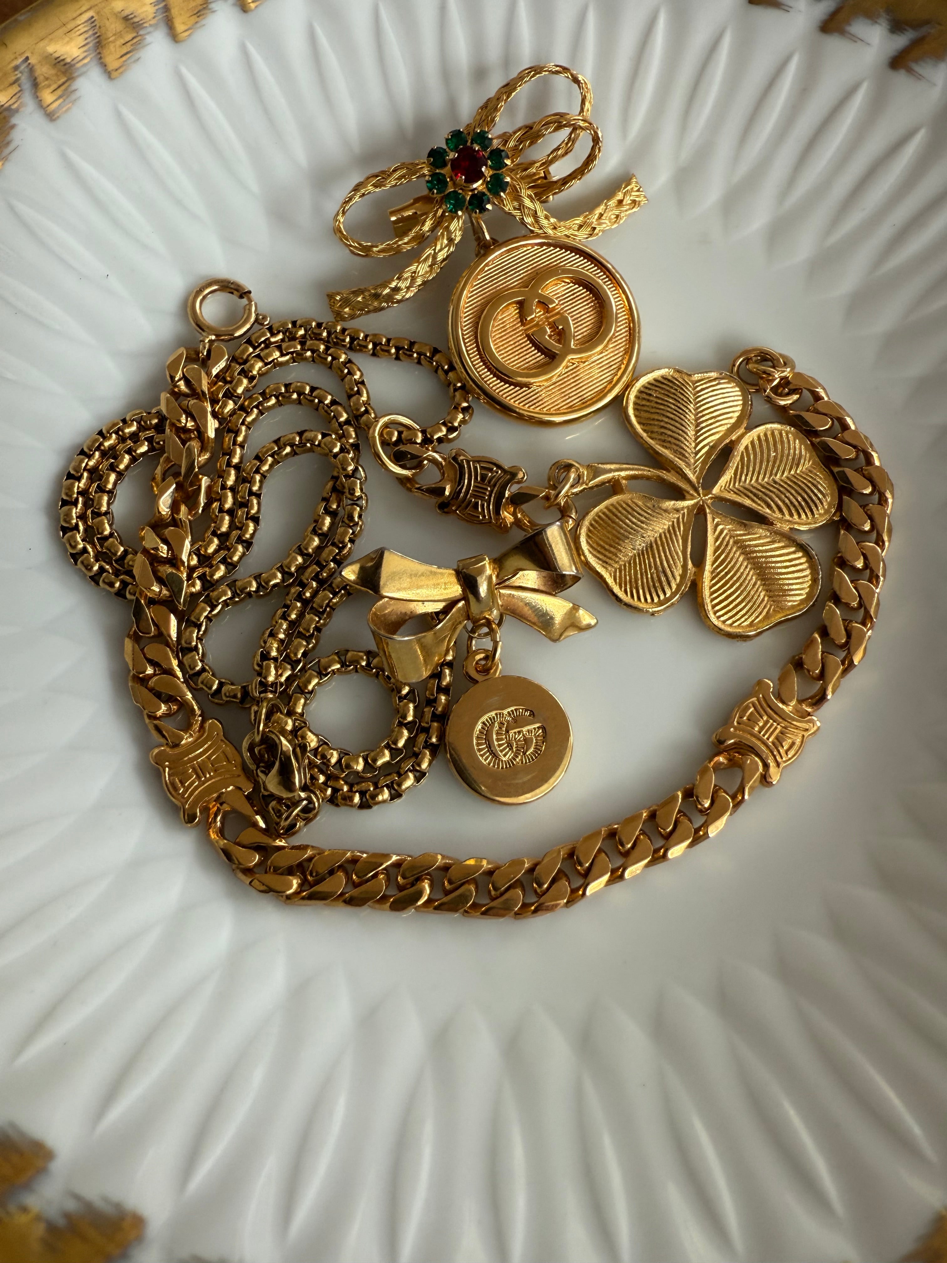 Small Gold Gucci Button and Vintage Bow Pin