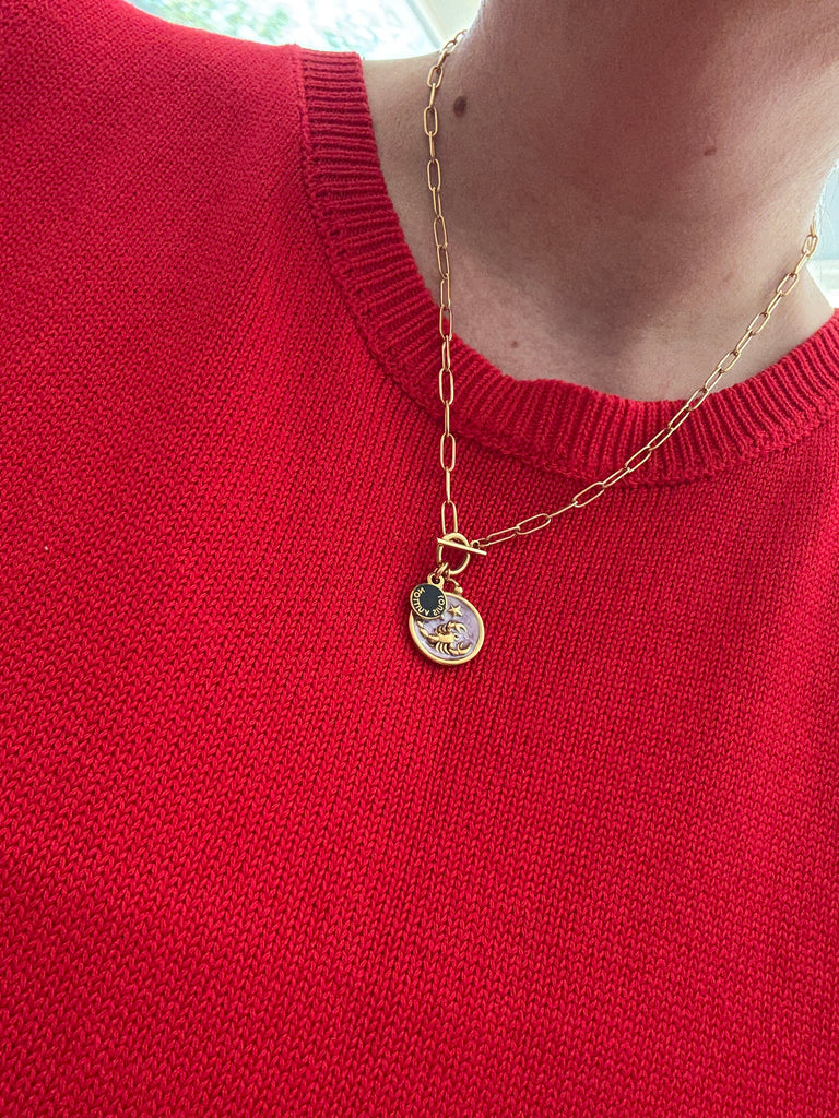 **Comes on beautiful 18 inch delicate gold plated paper clip toggle chain