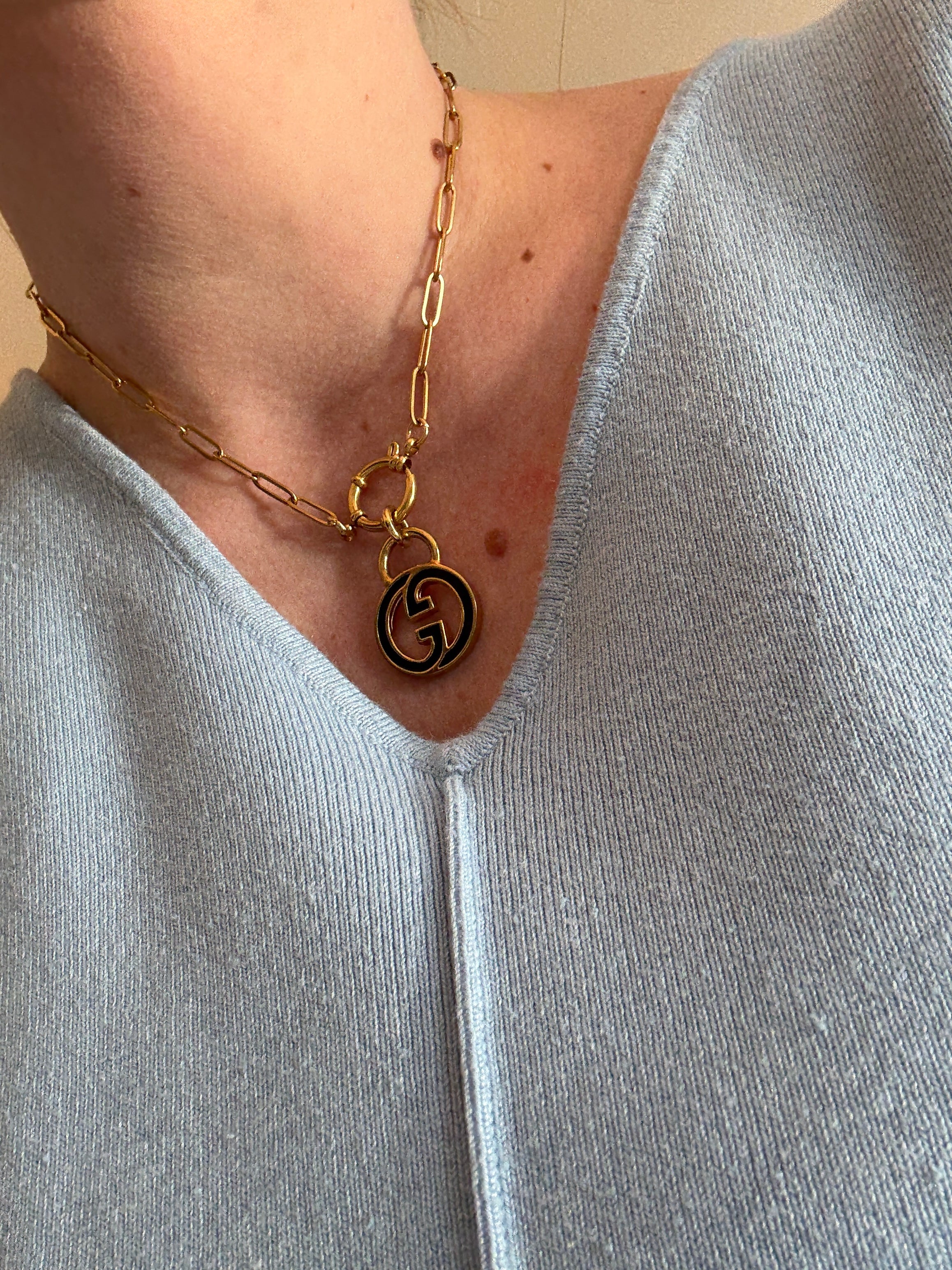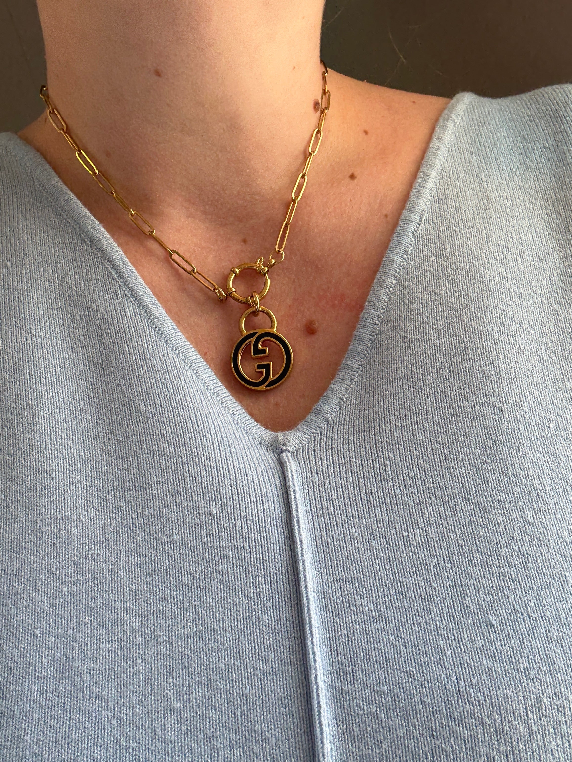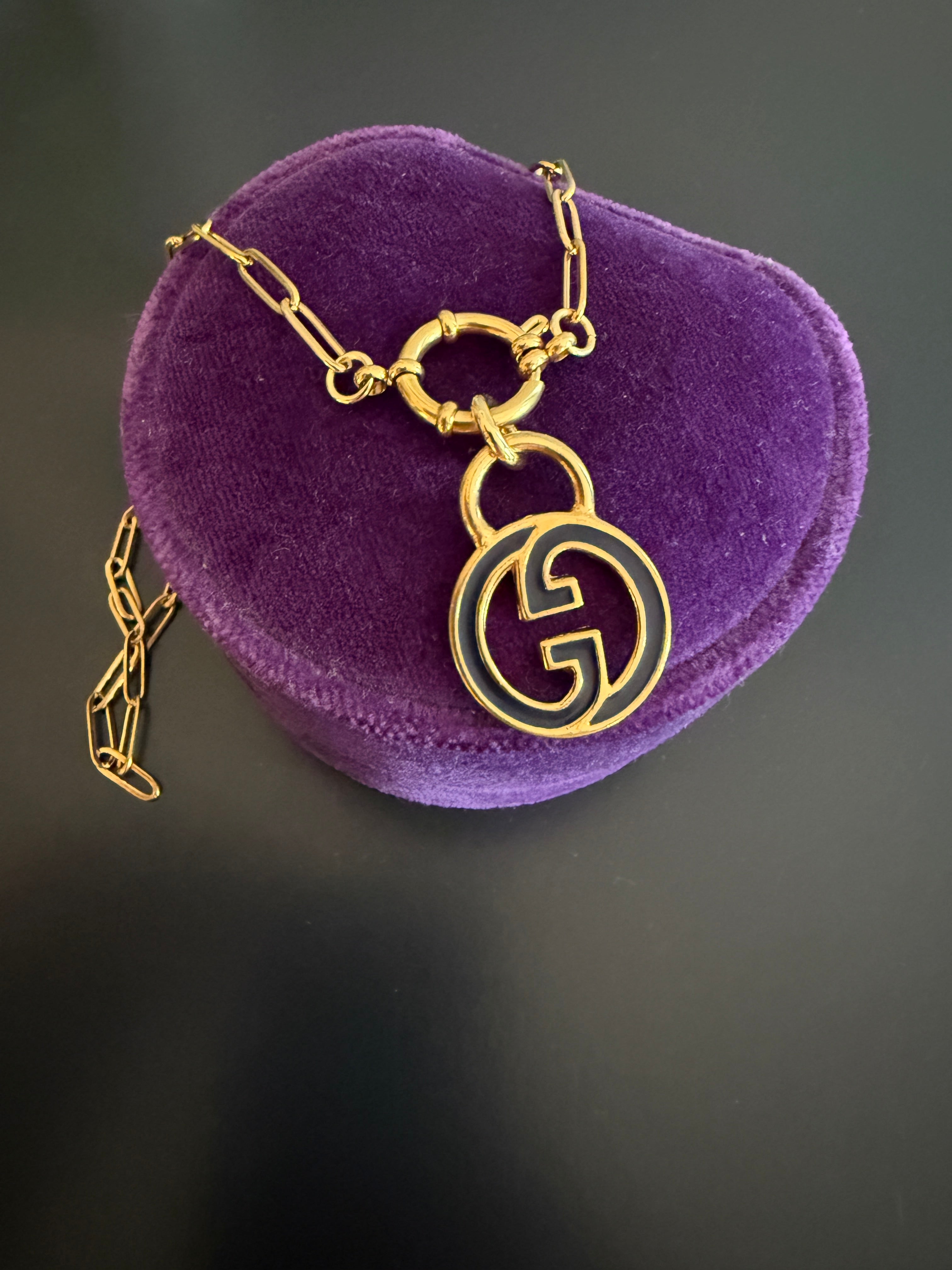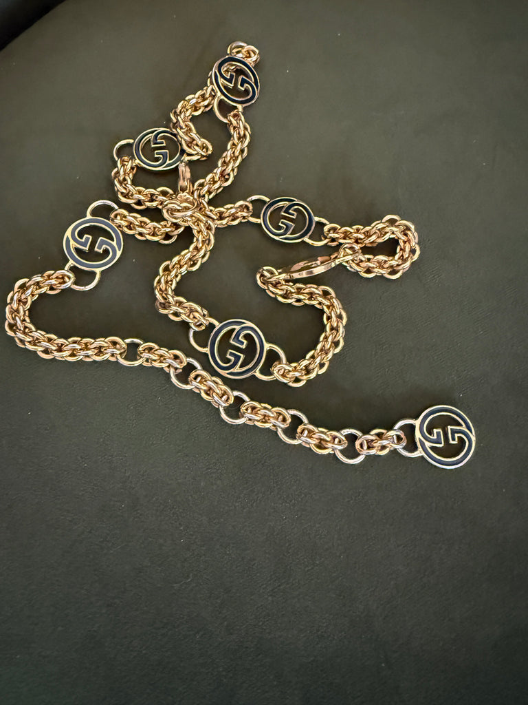Vintage Medium/Large Blue Enamel Gucci Charm Necklace
