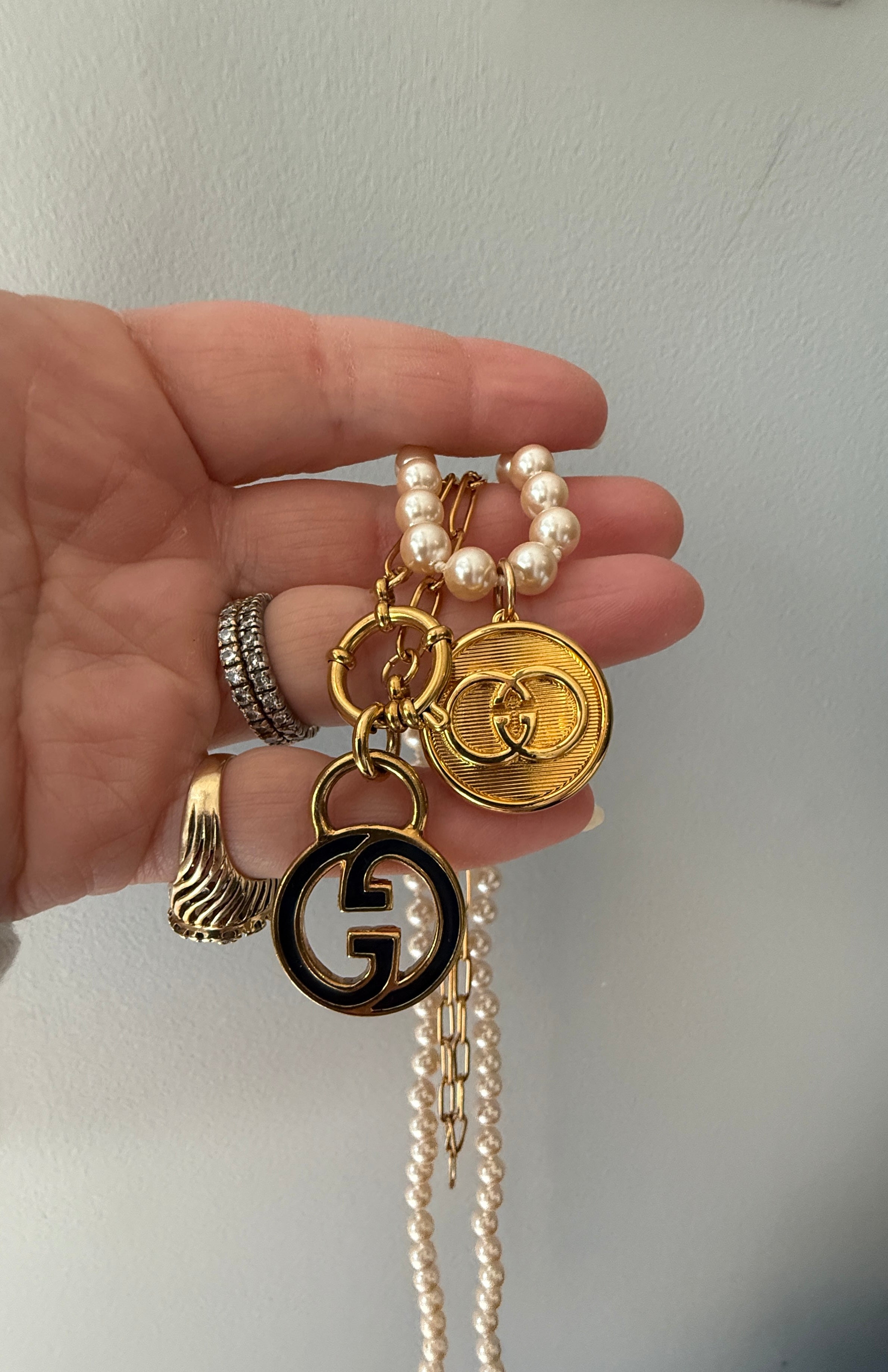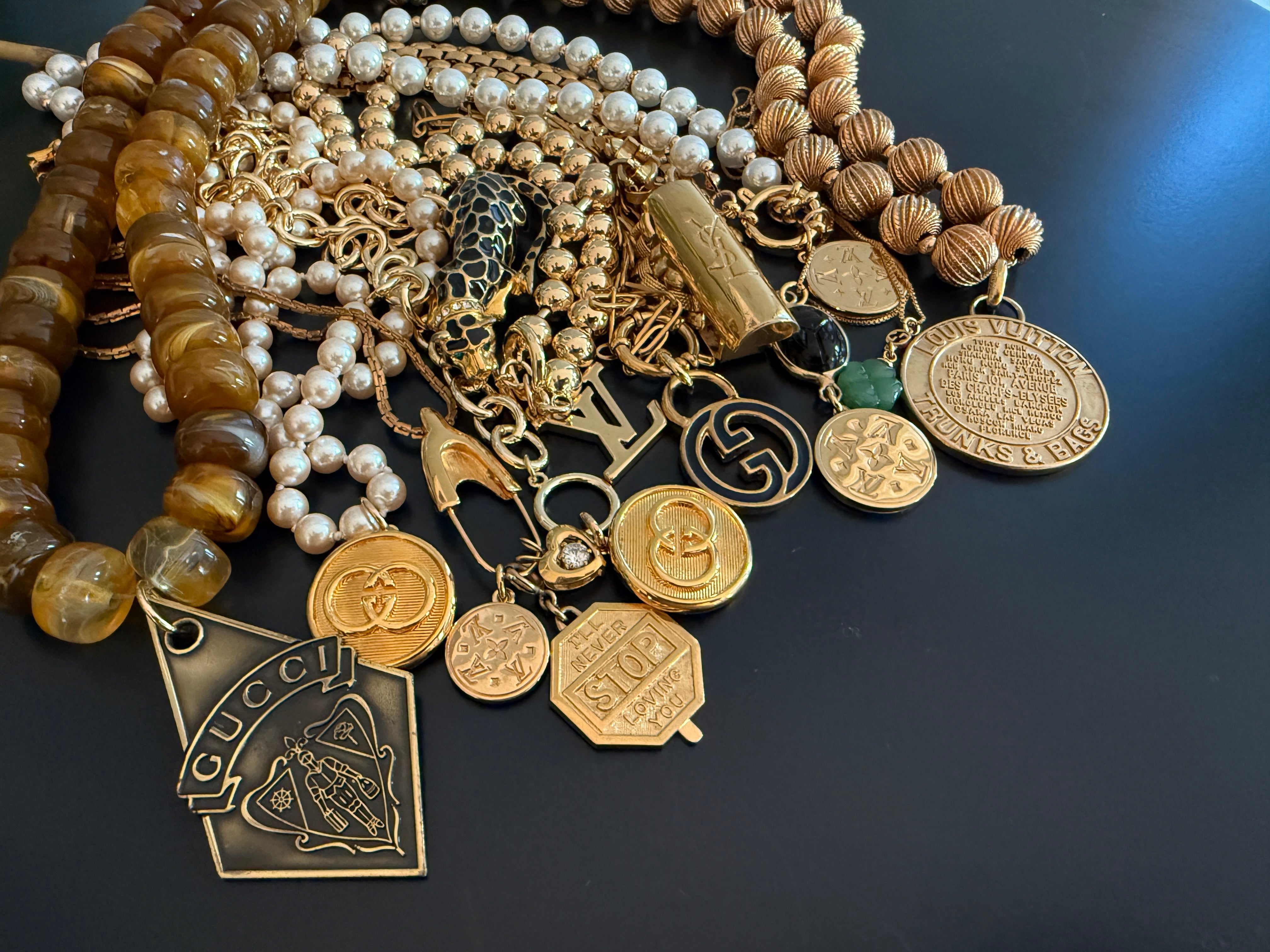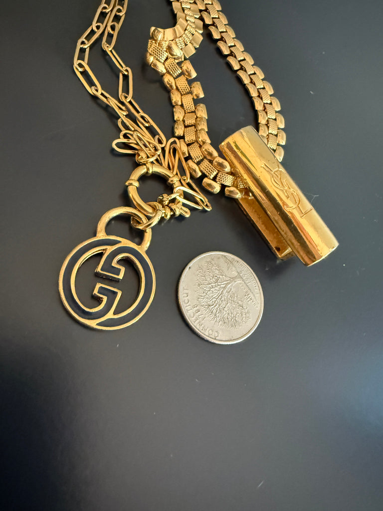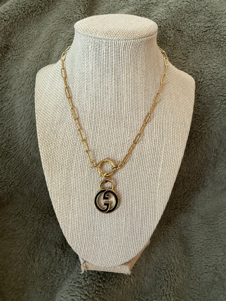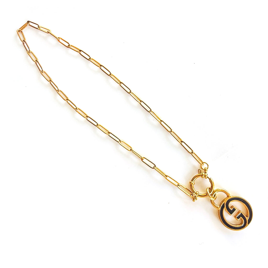 Vintage Medium/Large Blue Enamel Gucci Charm Necklace