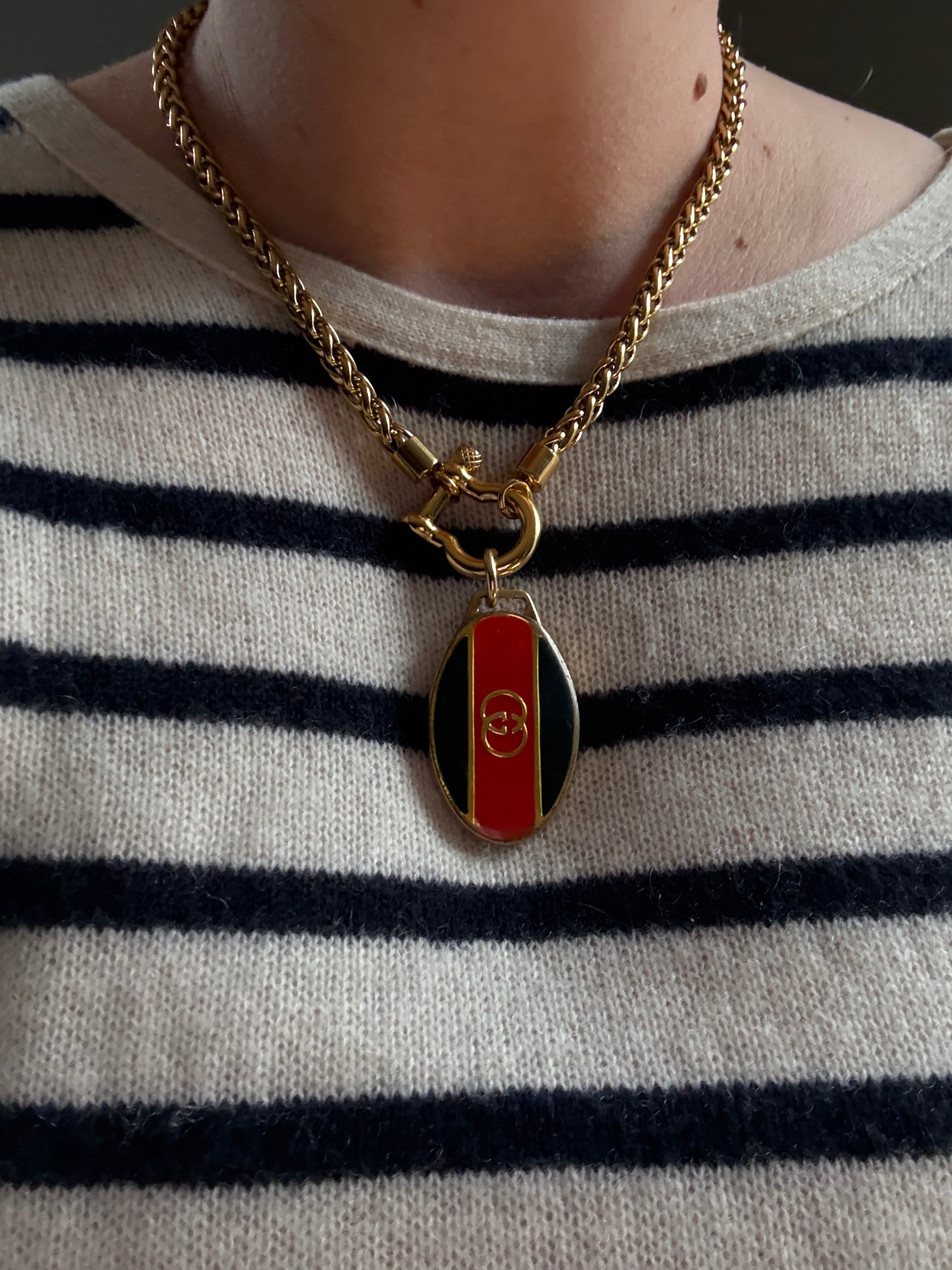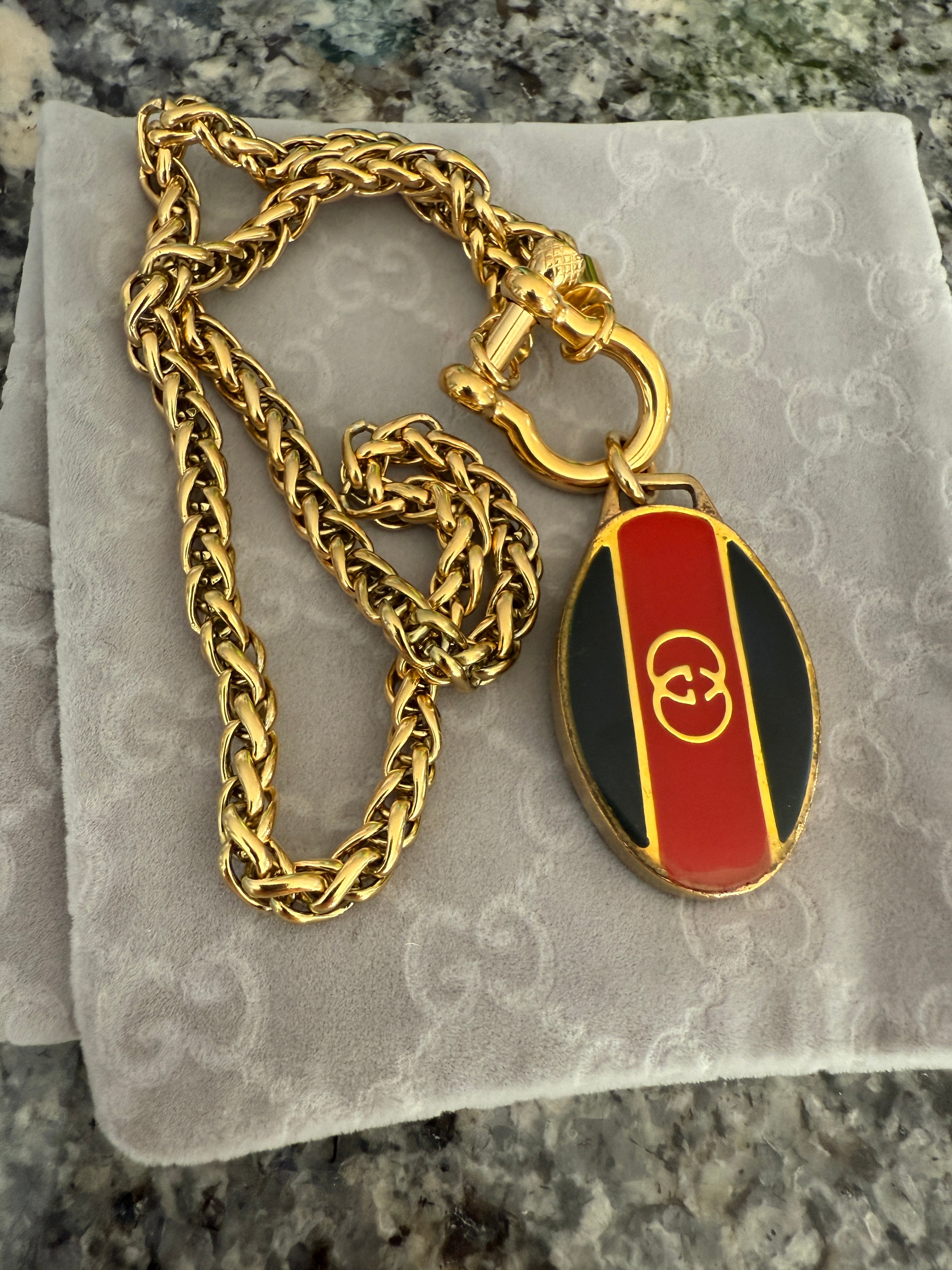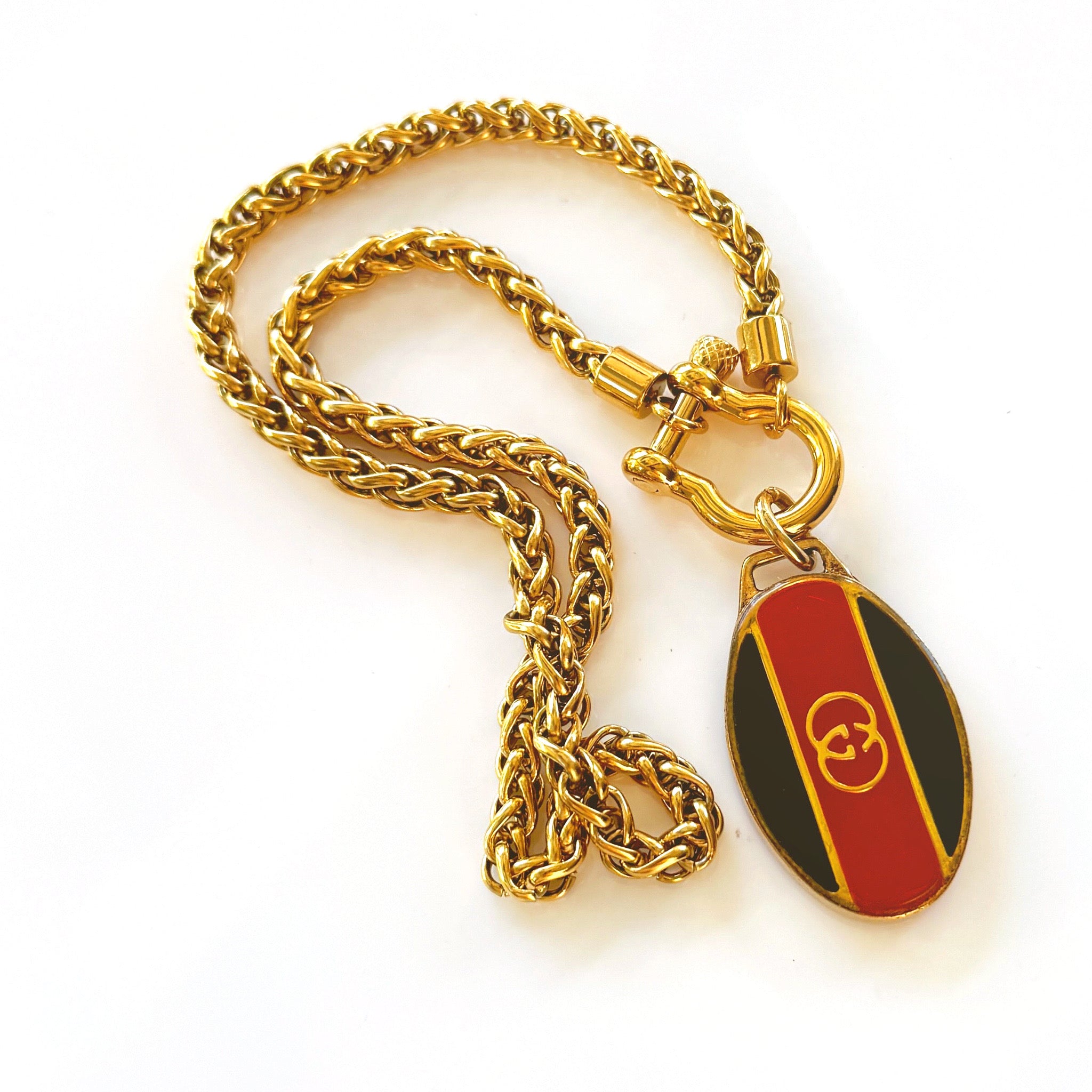 Vintage Oval Enamel Gucci “GG” Enamel Charm and Chunky Chain Necklace