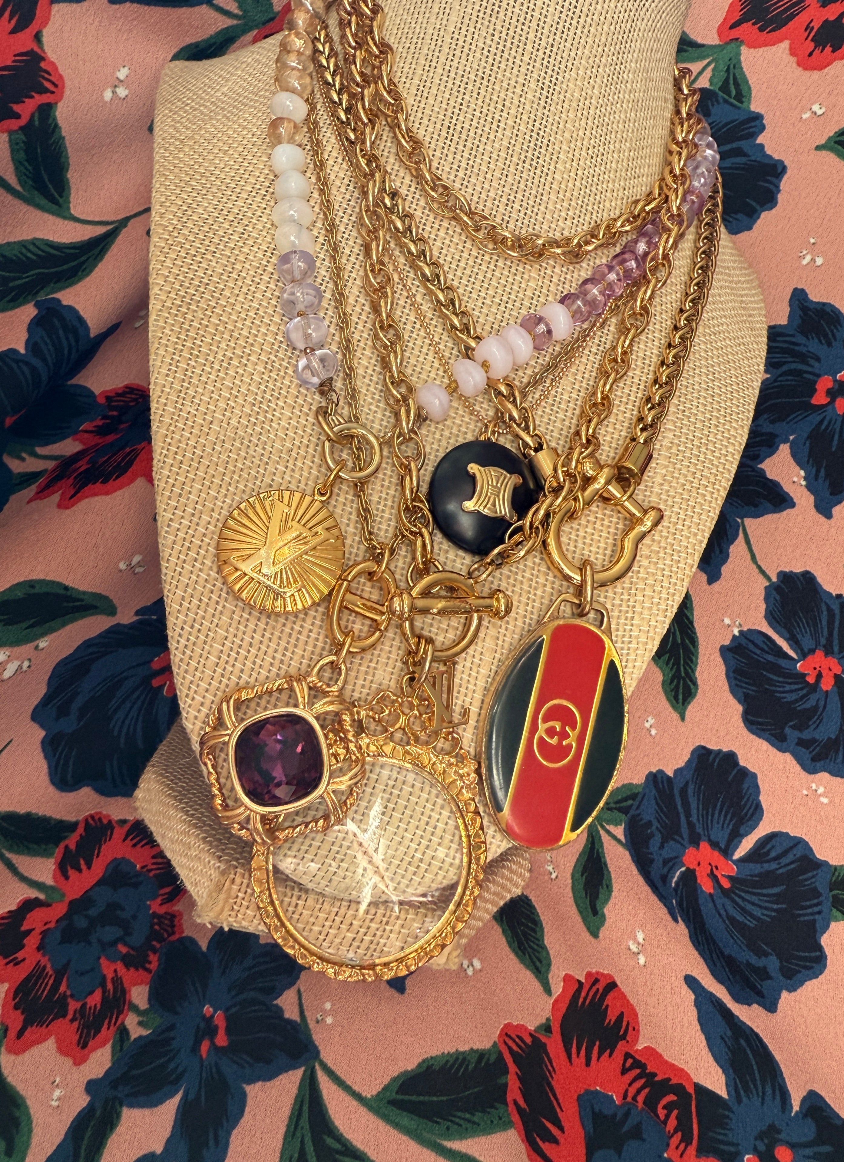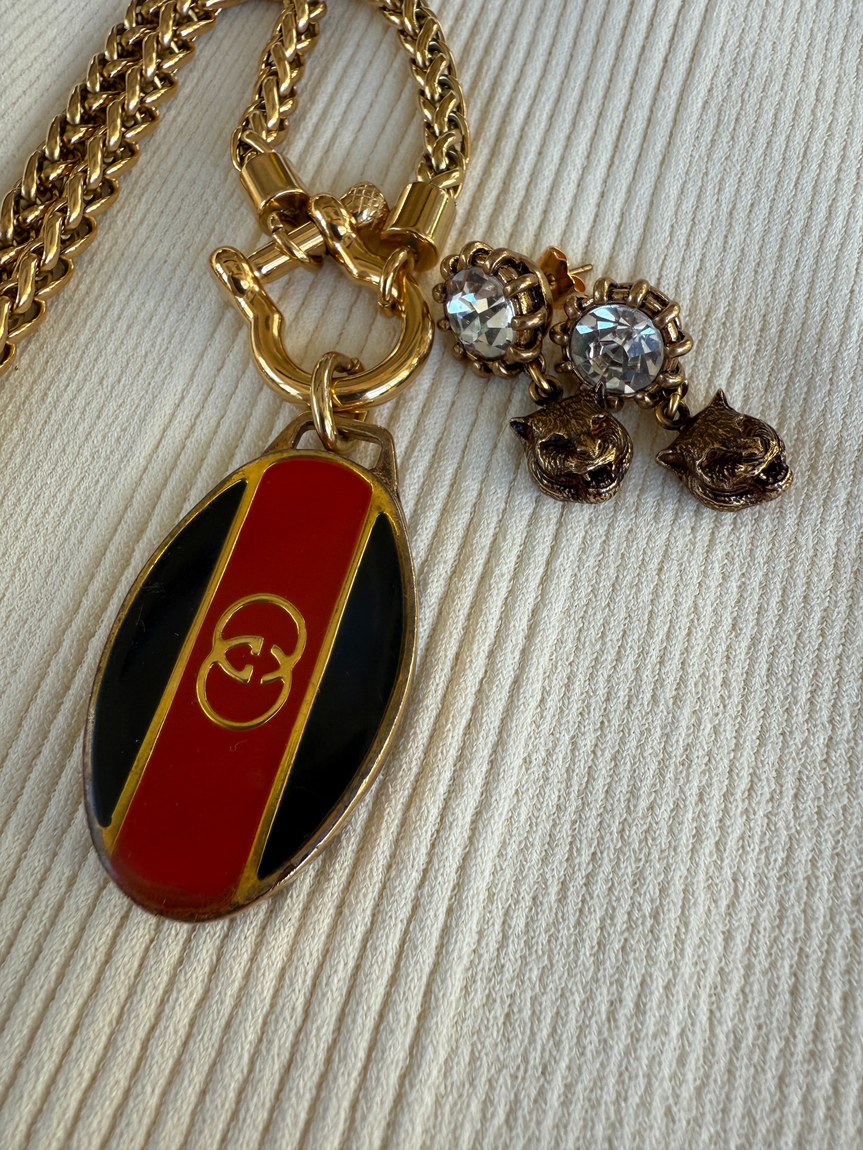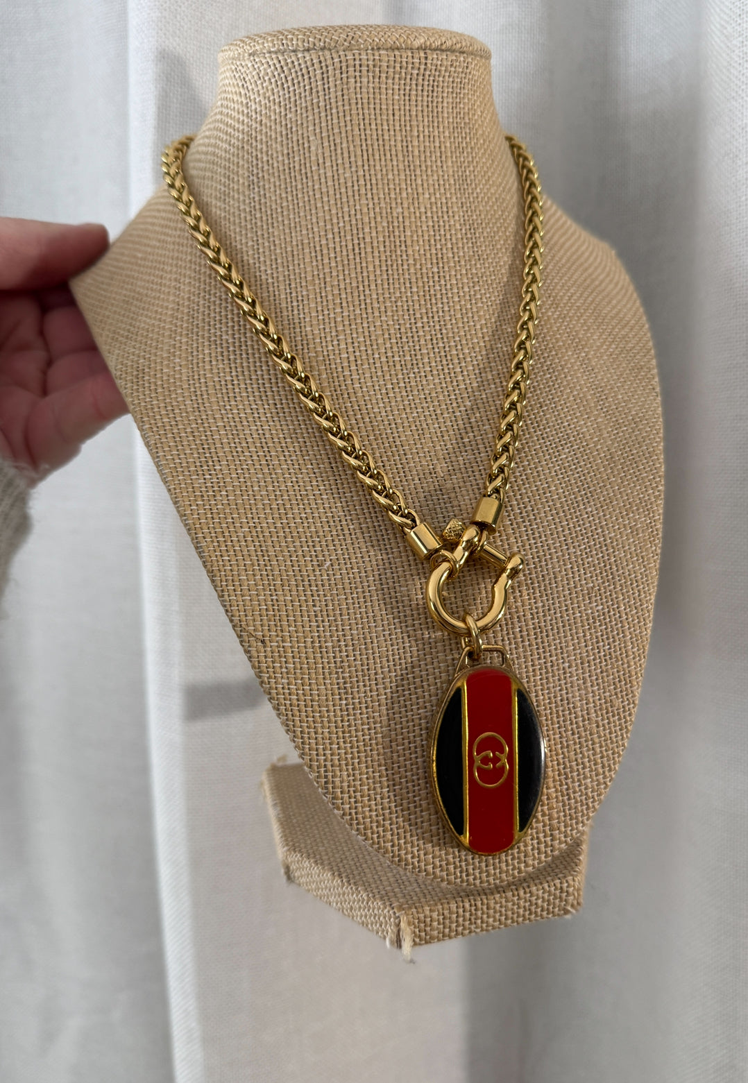 Vintage Oval Enamel Gucci “GG” Enamel Charm and Chunky Chain Necklace