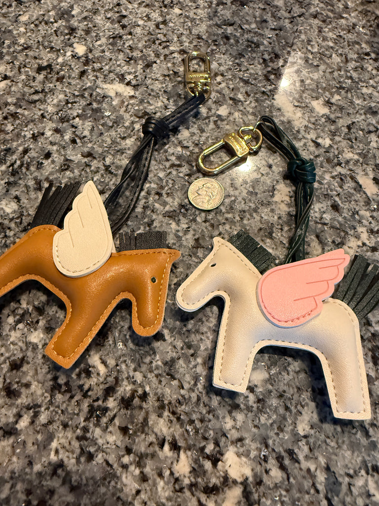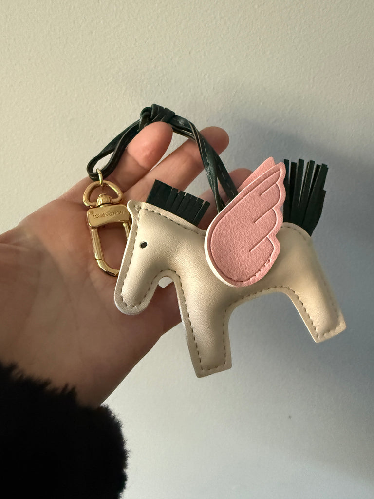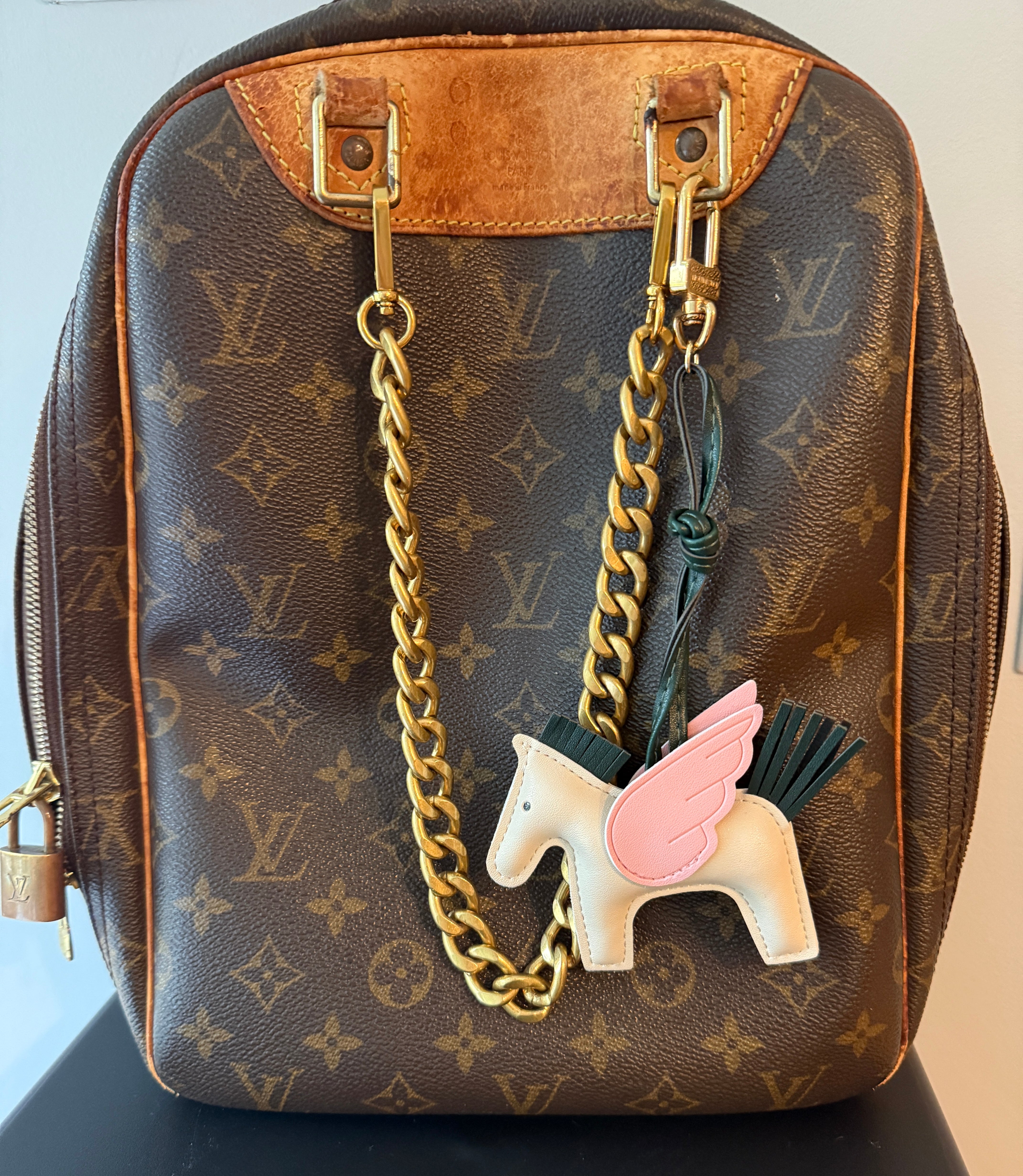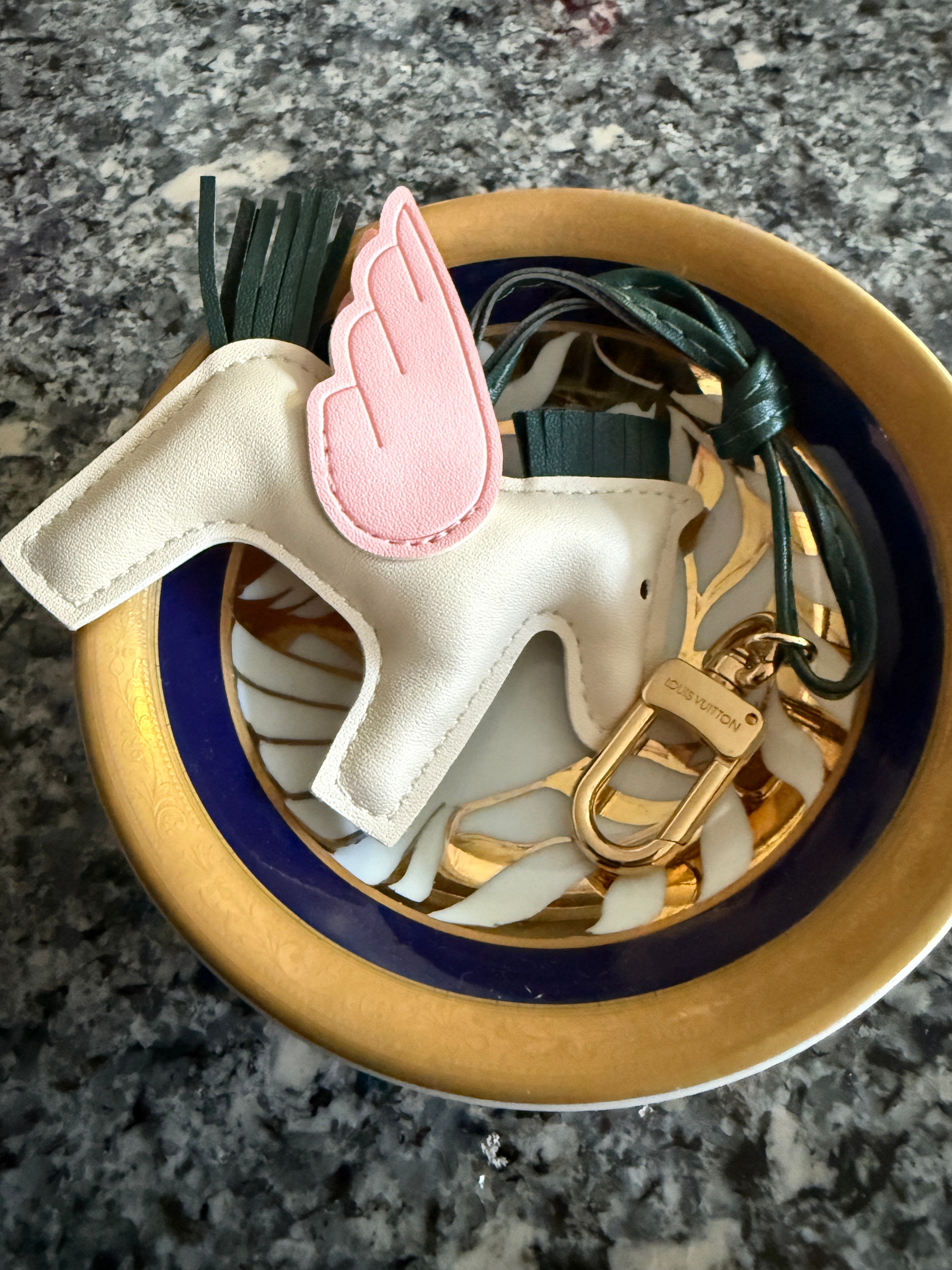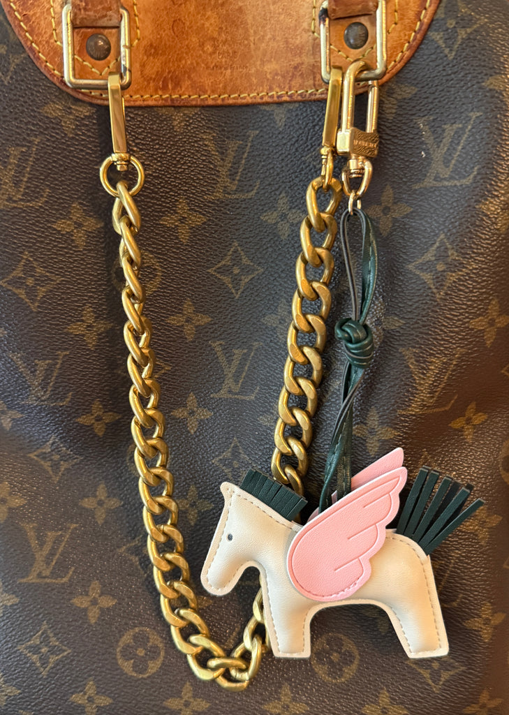 White Leather Horse and Gold Louis Vuitton Bag Charm